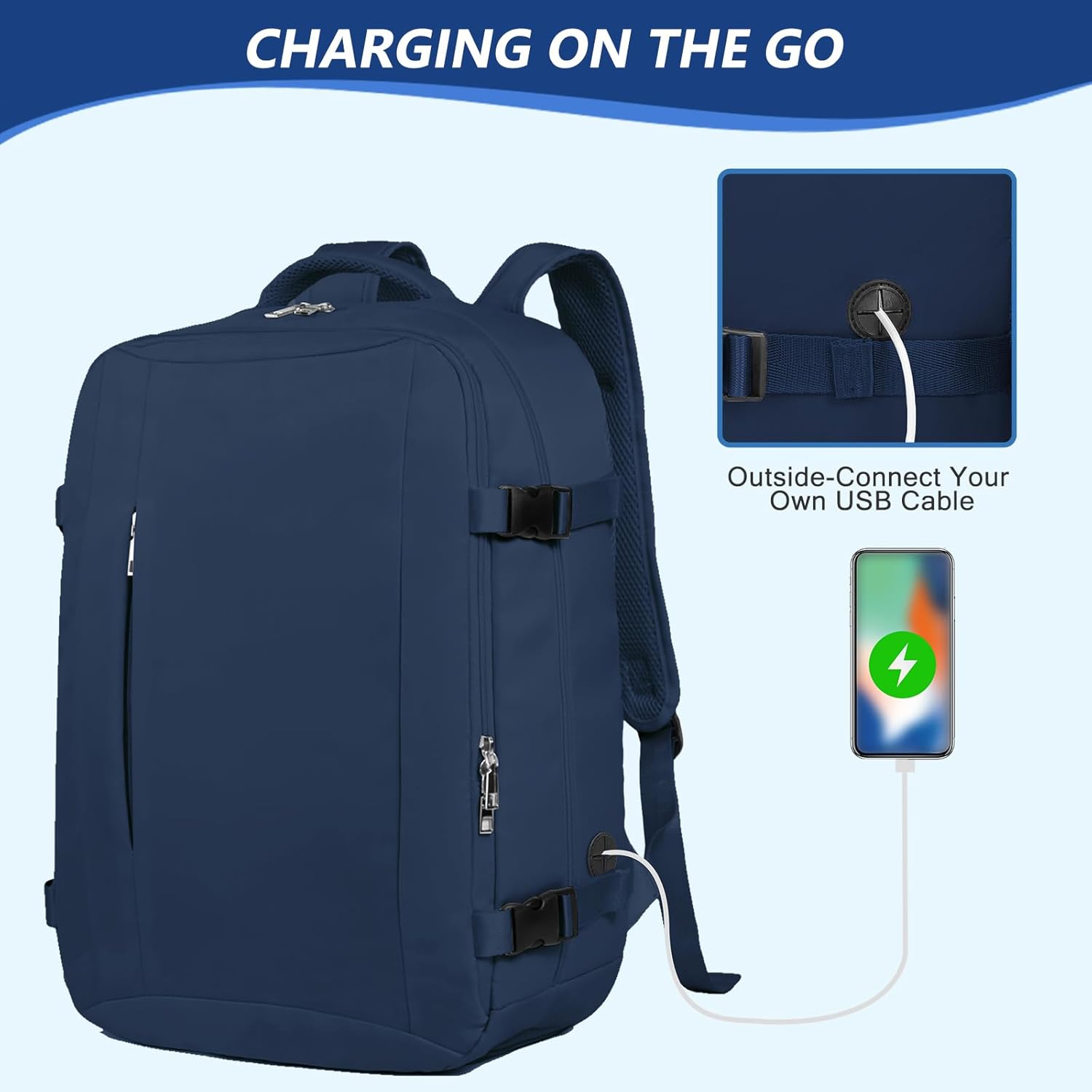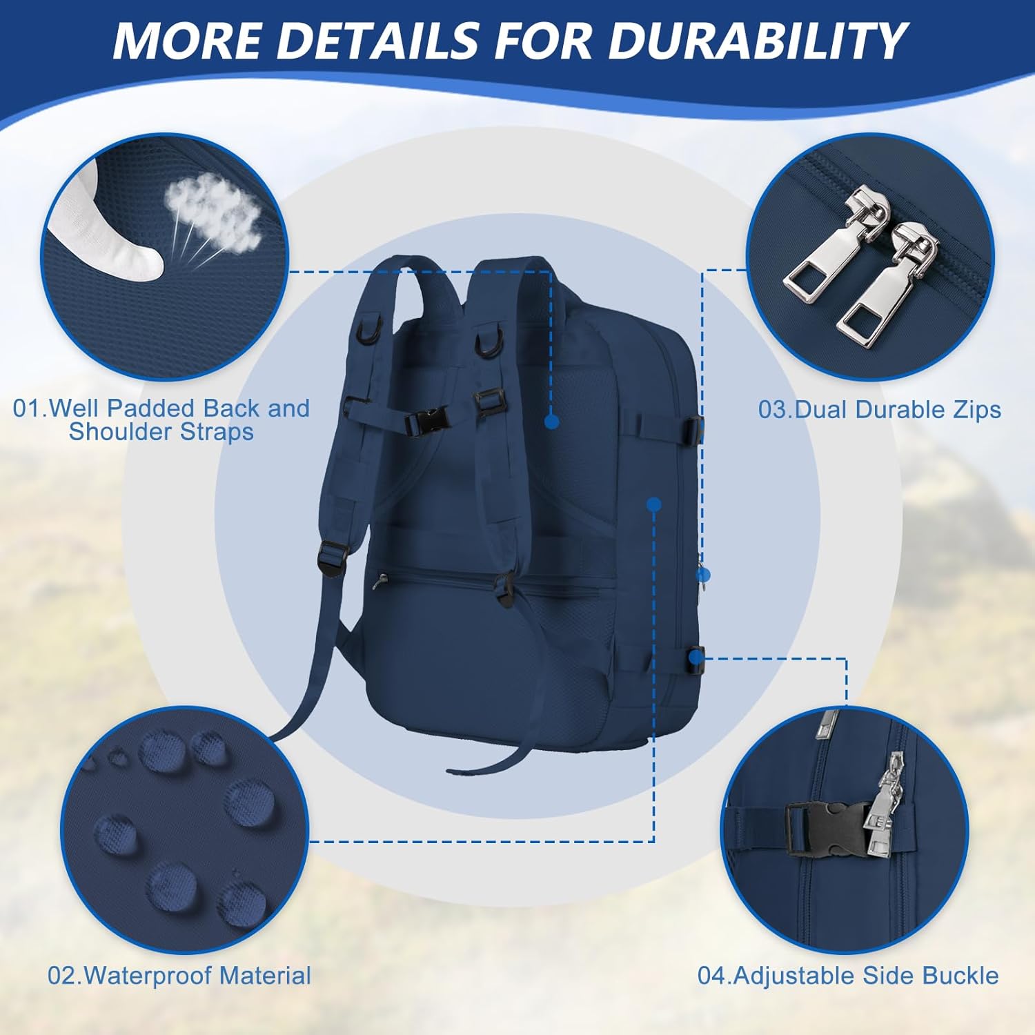 【Relieve Shoulder Stress】We use honeycomb breathable material for the two padded shoulder strap and back side,and keep cool when you carry it for a long time, and the chest support buckle design can reduce the weight of the shoulders in one direction.Besides, a belt is designed for the hand luggage, the backpack can be fastened to the luggage, and it is light to carry.