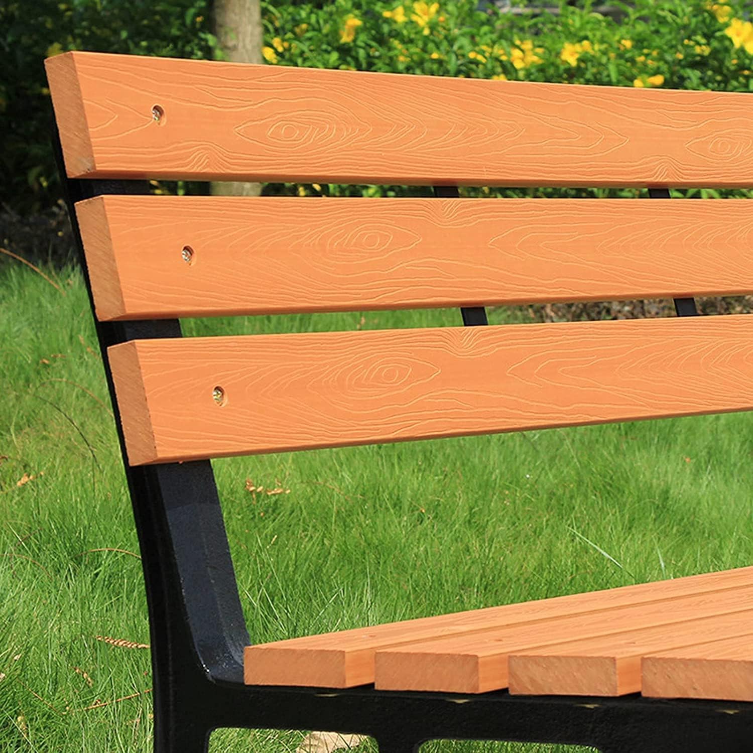 1. Durable material: The seat and backrest of the garden bench are made of plastic wood and cast iron frame. The surface is professionally painted. It has the characteristics of anti-rust, weatherproof, strong weather resistance, oxidation resistance and so on.