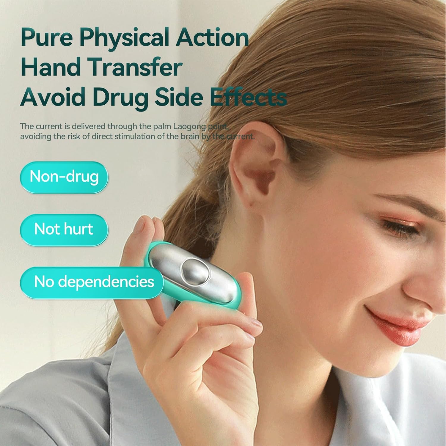 【Sleek and User-friendly】- Embodying a blend of simplicity and elegance, this handheld sleep aid is your pocket-sized companion. Lightweight and compact, its intuitive round button design means power and adjustments are just a click away, making your journey to sleep straightforward every night.
