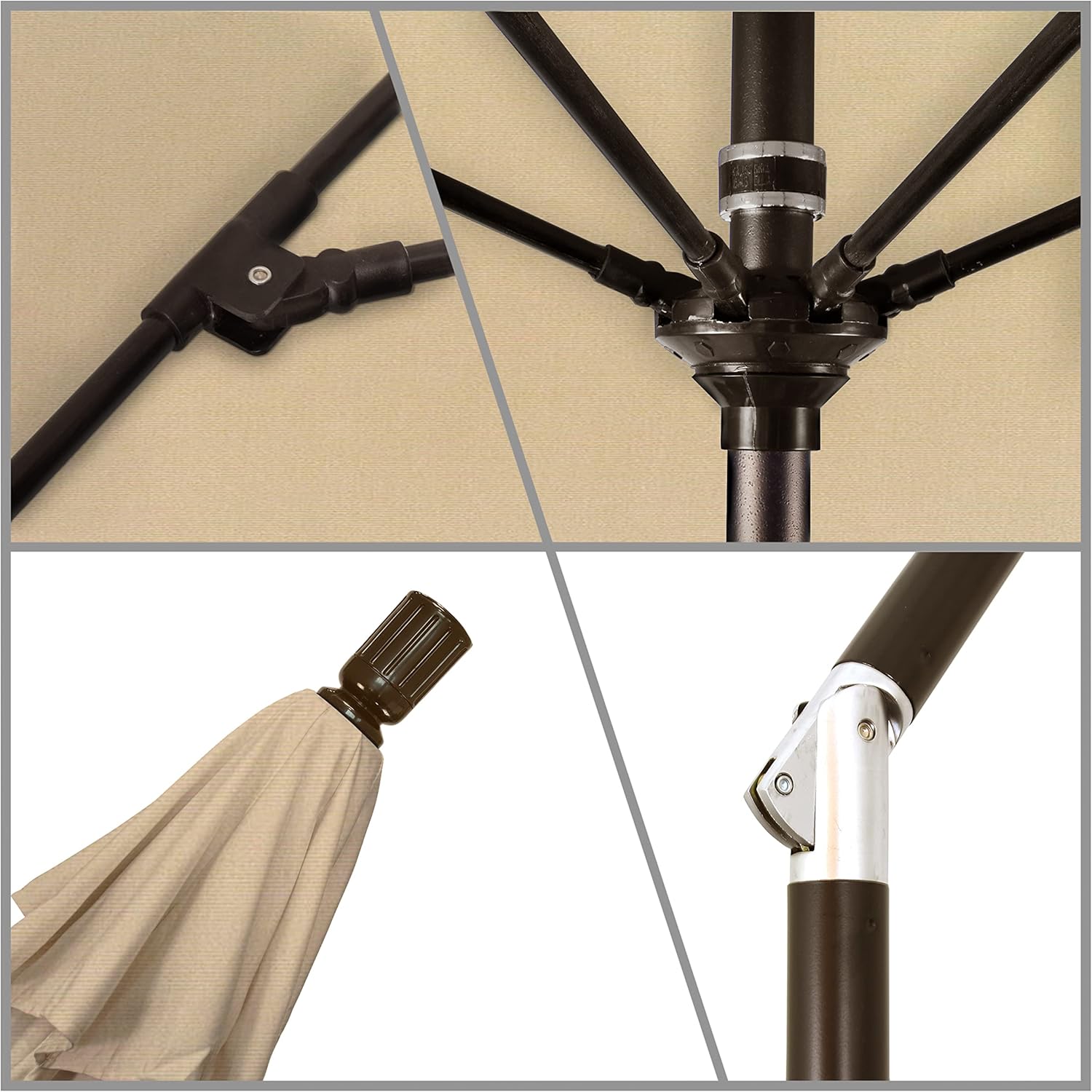California Umbrella 11′ Round Aluminum Pole Fiberglass Rib Market Umbrella, Crank Lift, Collar Tilt, Bronze Pole, Pacifica Beige