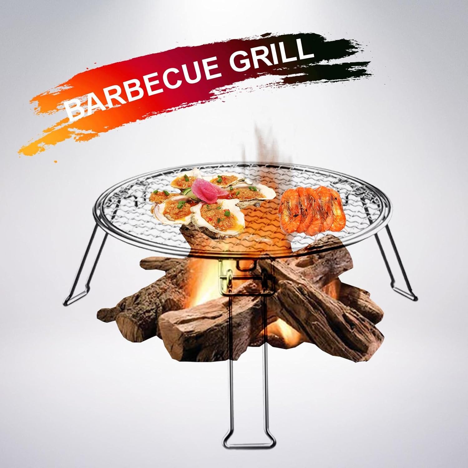 Camp Fire Cooking Racks,Round Fire Pit Cooking Grill Grate | Portable Over Fire Camp Grill BBQ Grate For Backpacking, Hiking, Picnics, Fishing For Outdoor Open Flame Cooking