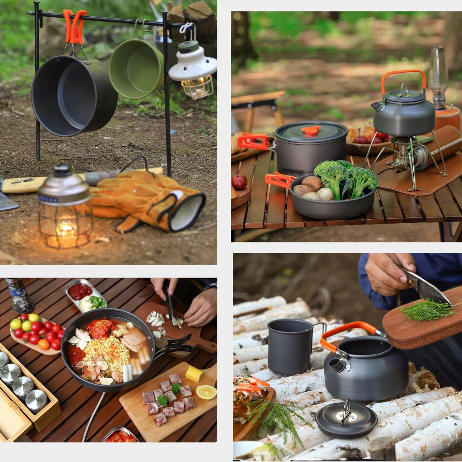 Camping Cookware Kit, Lightweight Camping Pot Picnic Pots Cookware Camping Set, Outdoor Camping Cookware Kit Portable Frying Pan Pot Kettle Set for Hiking Picnic