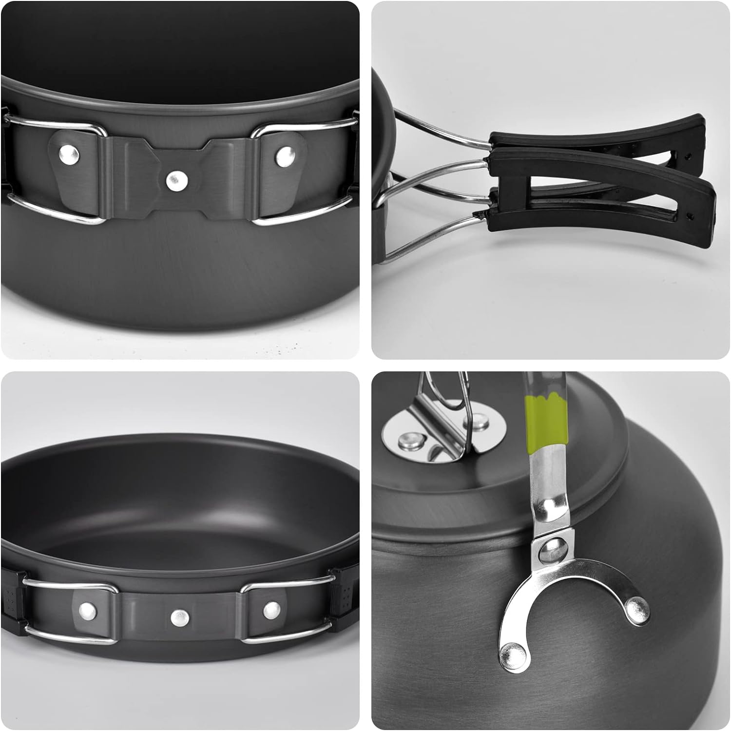 【 Food Grade Material】 Queta camping cookware set is FDA approved and made of safe, non-toxic aluminum with non-stick coating for easy cleaning. Hard anodized aluminum provides fast heating, high temperature resistance and corrosion resistance.