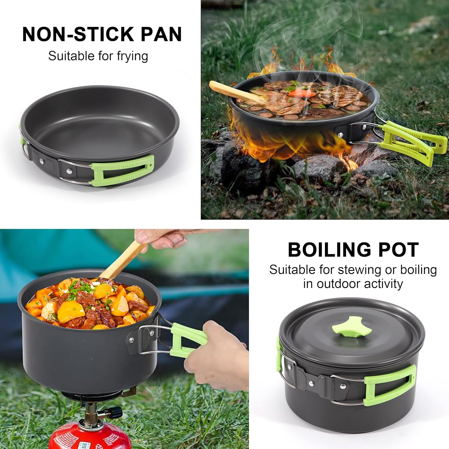 Camping Cookware Set Portable Camping Cooking Kit Non Stick Camping Pots and Pans for Camping Picnic Hiking BBQ for 2-3 People