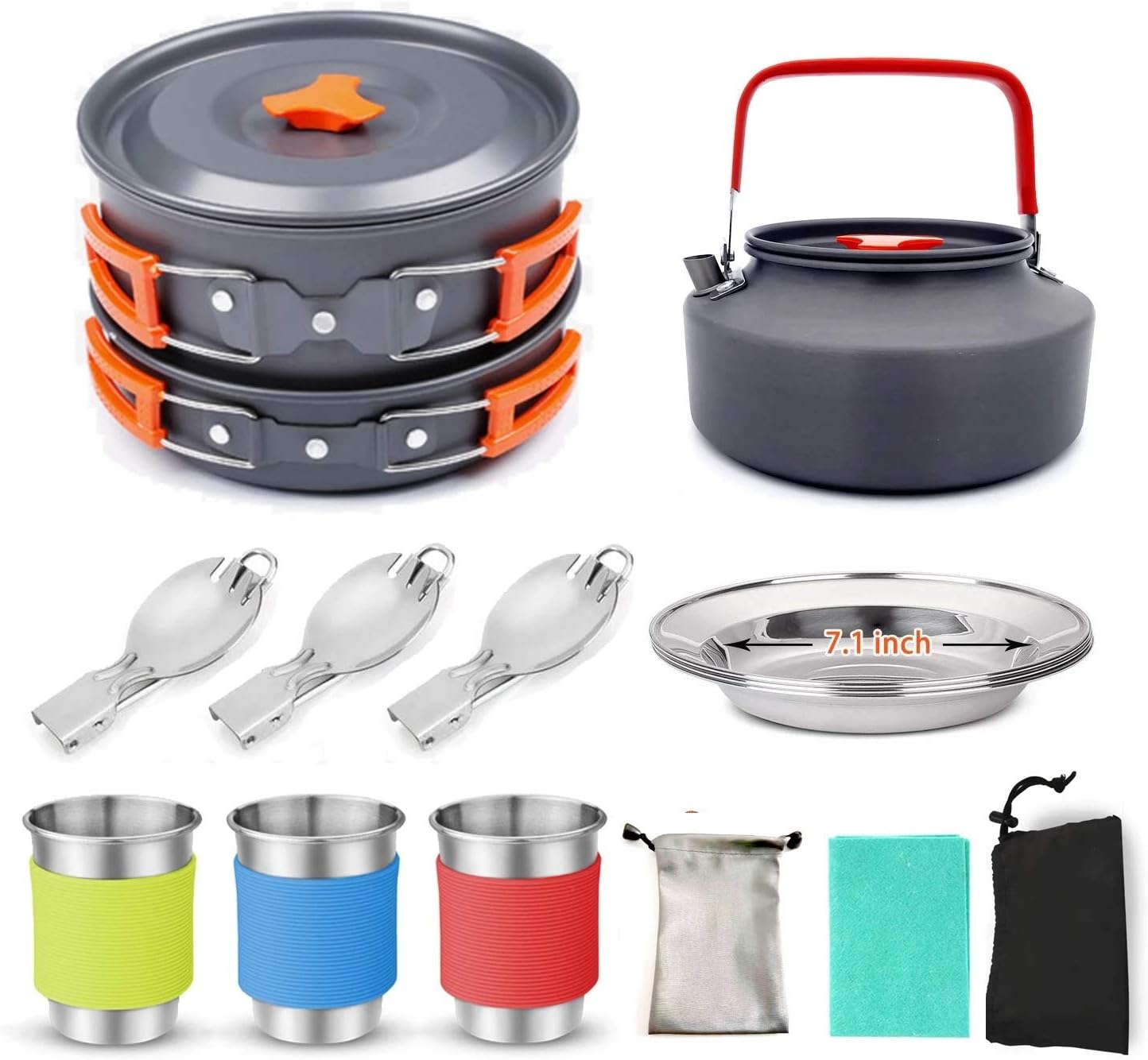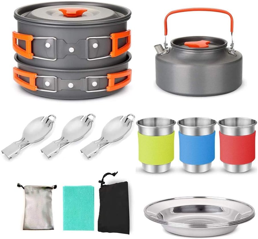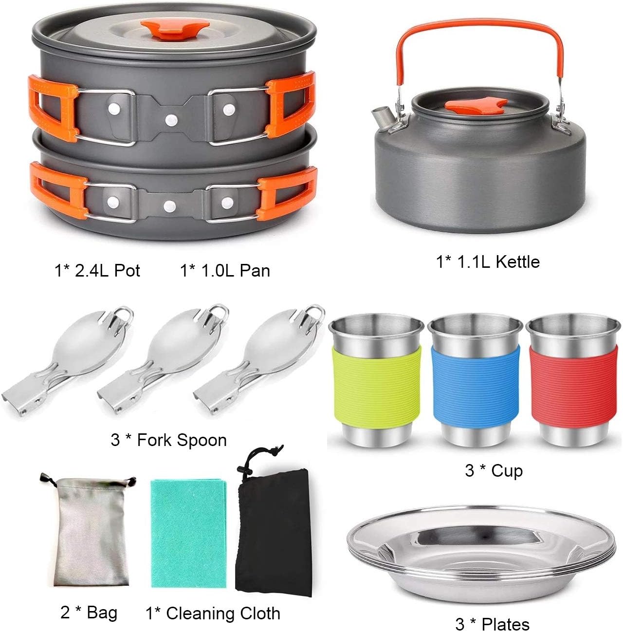 Camping Picnic Set Pan Pot Kettle Cookware Kit Camping Water Cup Spoon with Carry Bag Outdoor Cookware for Picnic Backpacking