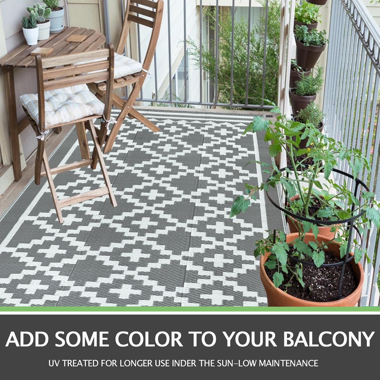 【Waterproof Outdoor Rug】120cm x 180cm plastic straw rug is reversible and double side are waterproof-front and back side have the same pattern in different color to hence double service life.when one side has stains, or you’re tired of the pattern,changing the side will give your floor a new fancy look.