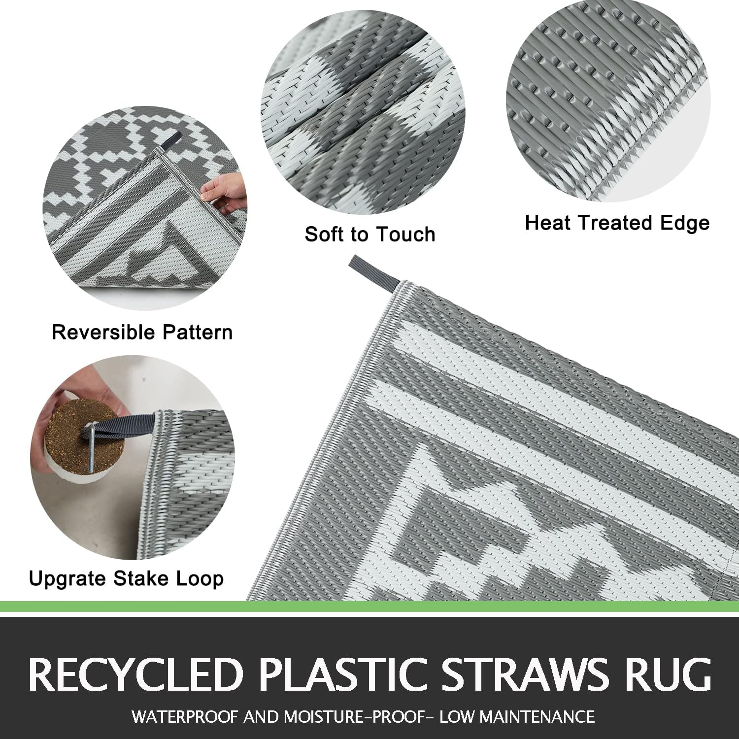 【Reversible Plastic Straw Rug】Capslpad outdoor rug is made of 100% wear-resistant polypropylene materials,woven tightly,thick and recyclable,offering you a cozy feeling and comfortable to walk on barefoot.outdoor rugs can prevent children or pets from scratching the floor and protect the safety of your family.