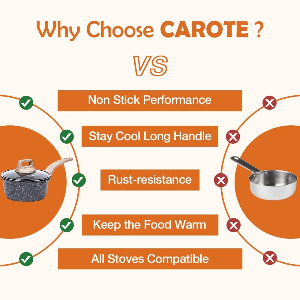 SERVICE & GUARANTEE: CAROTE has over 25 years experiences in non-stick cookware, in case you receive defect or damaged saucepan by shipping, please feel free to contact us, we will address your concern within 24 hours and all cookware is guaranteed to get 100% refund or new replacement.
