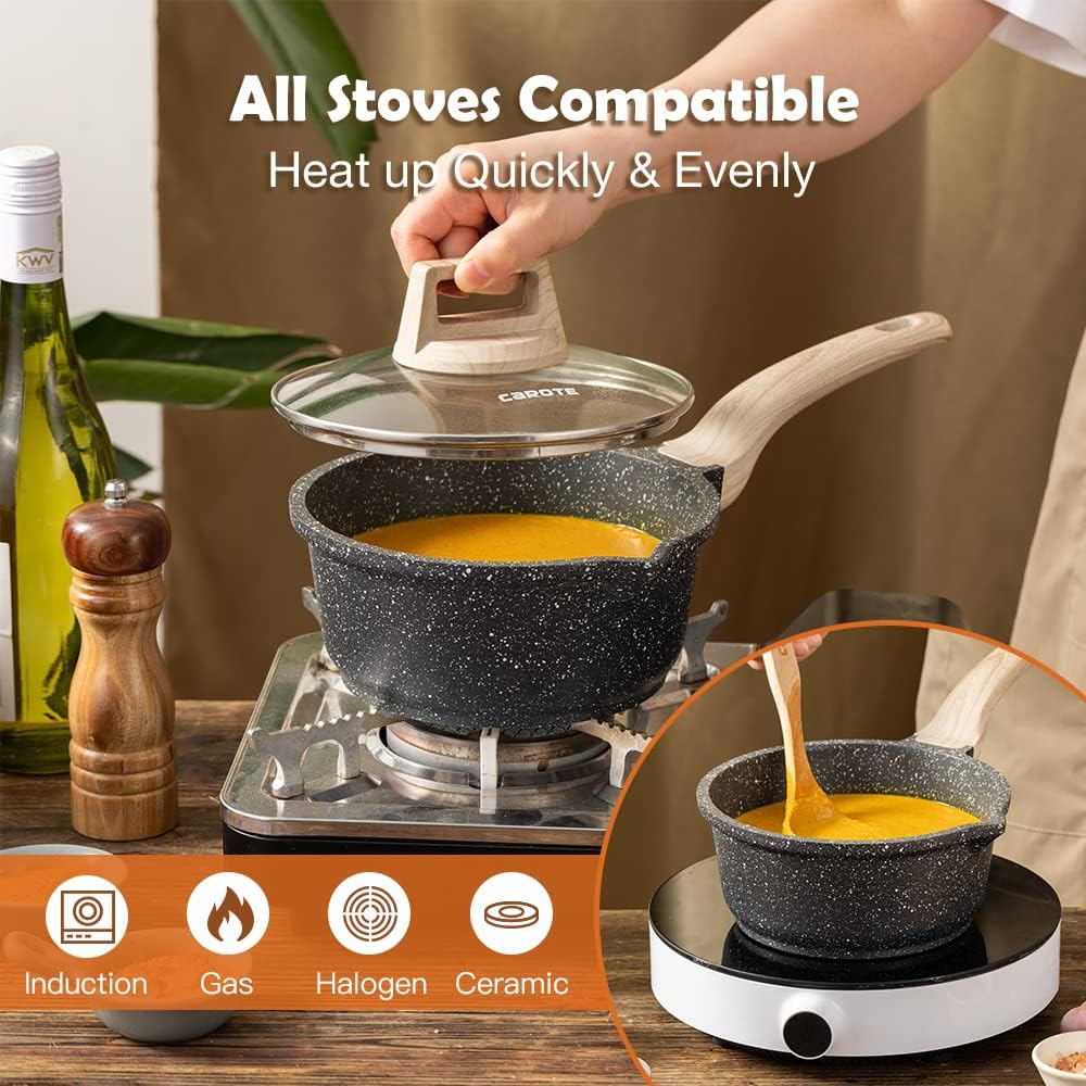 CAROTE Saucepan with Lid 16cm/1.5L, Nonstick Sauce Pot for Induction,