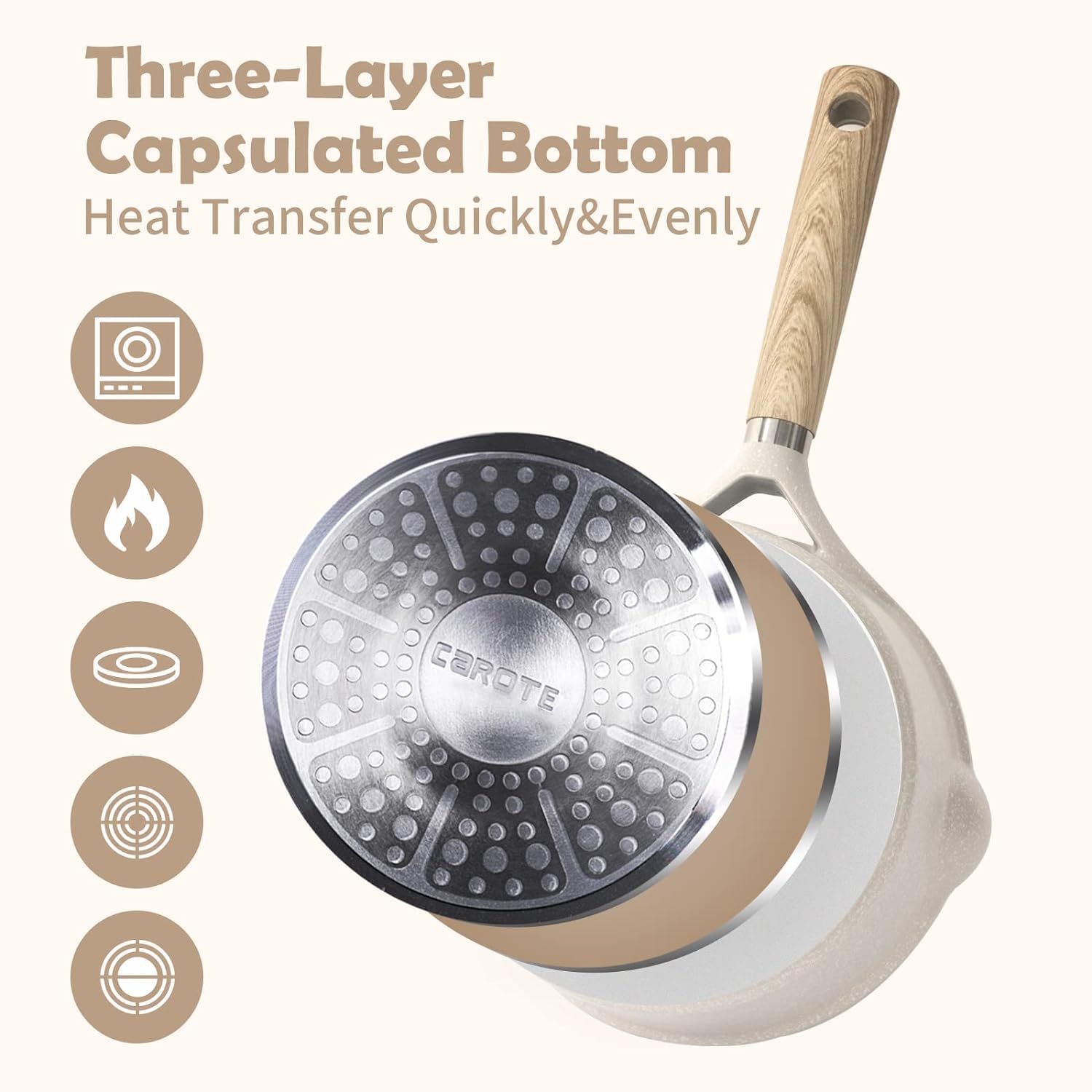 CAROTE Saucepan with Lid, Nonstick Sauce Pot for Induction, Gas and