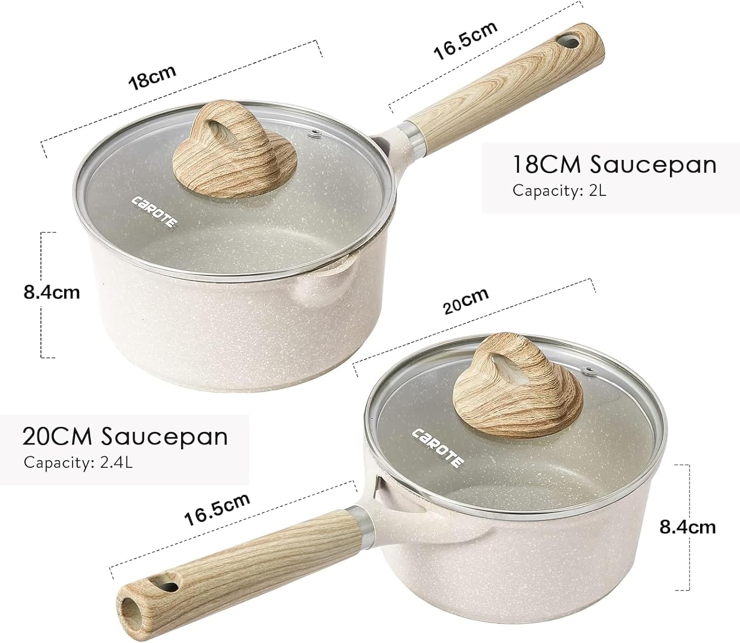 SERVICE & GUARANTEE: CAROTE has over 25 years experiences in non-stick cookware, in case you receive defect or damaged saucepan by shipping, please feel free to contact us, we will address your concern within 24 hours and all cookware is guaranteed to get 100% refund or new replacement.