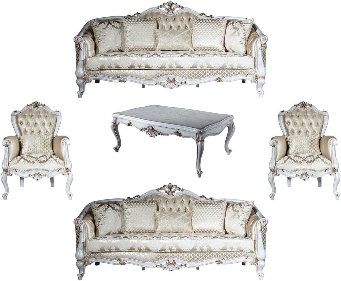 Casa Padrino luxury baroque living room set gold pattern/antique white/gold – 2 Sofas & 2 Armchairs & 1 Coffee Table – Living room furniture in baroque style – Noble & Magnificent