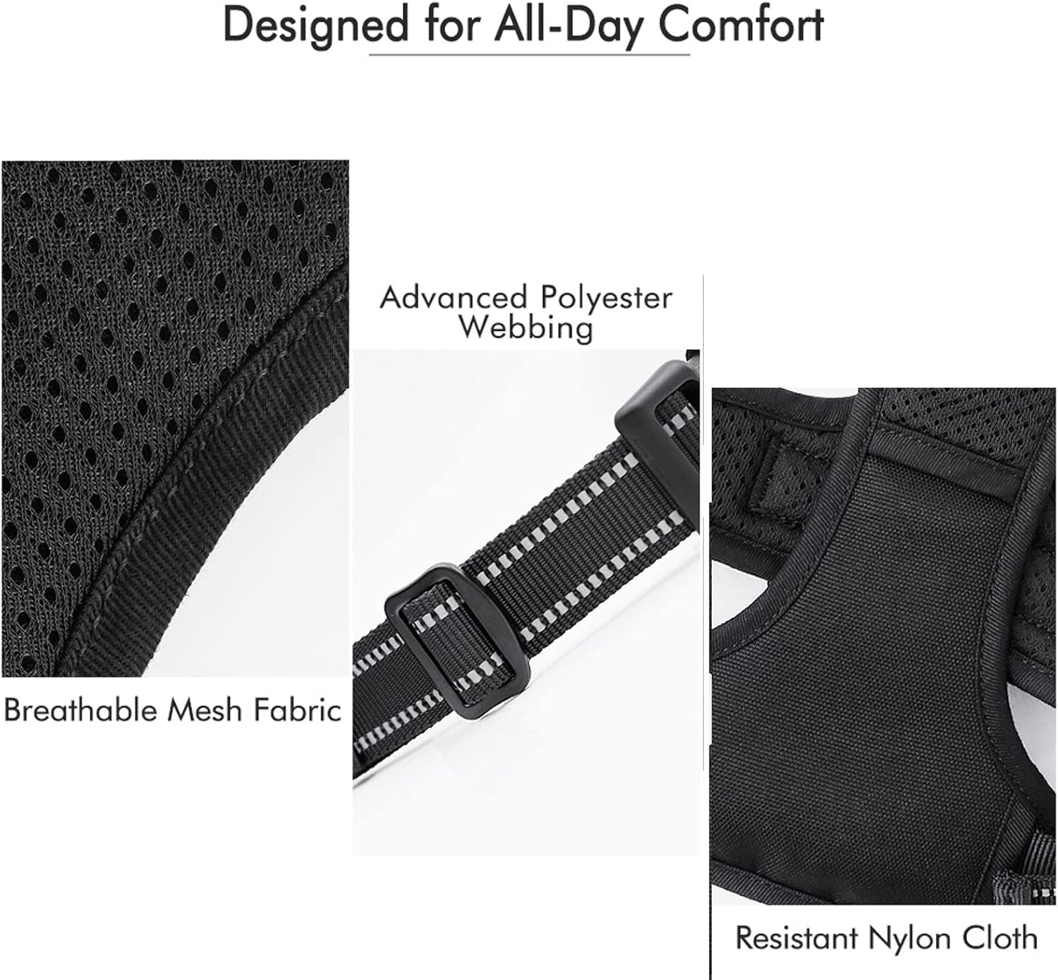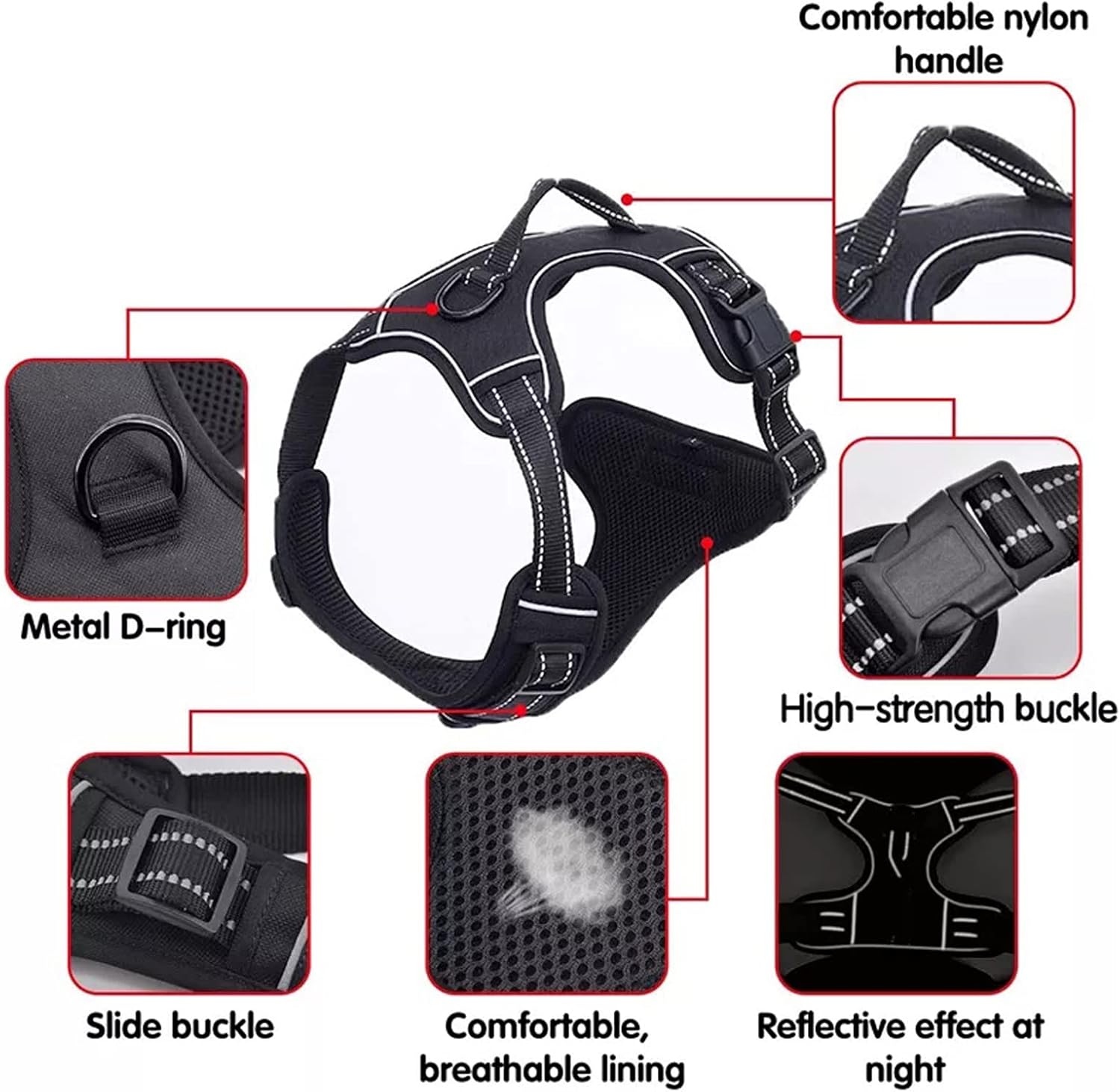 NO PULL NO CHOKE – Our non-pulling dog harness is specially designed with 2 Metal Leash Rings for safer dog walks. Use the CHEST attachment clip to stop your dog from pulling on walks, perfect for dog training or dogs who tend to pull. The BACK one is great for casual walks, jogging, hiking, etcSAFE and COMFORTABLE – Your dog will enjoy the daily walk in this comfort dog harness! Made of durable Nylon Oxford and padded with Soft Cushion to protect your dog’s skin. Breathable air mesh keeps your dog cool during outdoor activities. Super bright Reflective Strips ensure a SAFE walk both day and nightEasy to Wear and Adjust – This no pull dog harness is easy to wear and adjust, quick snap buckles ensure ease of use when putting on and taking off, fully adjustable straps at the chest and neck allow a custom fit for your fur friend, perfect for daily walking, running, jogging, hiking, training, outdoor fun time and more.Reflective and Breathable – Reflective straps ensure your dog’s safety while out for a walk, soft & breathable material plus sturdy padding make your dog enjoy wearing it. Perfect gift for your four-legged friend/baby for Thanksgiving, Christmas, New Year, etc.
