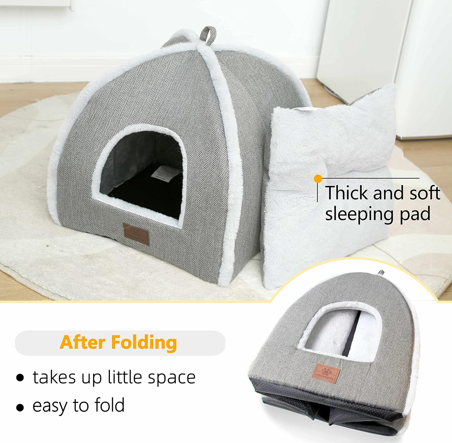 【Foldable Cat Bed】Comfortable cave cat tent, very convenient to carry and store, can be folded in seconds, very convenient for travel. , 2 in 1 closed pet bed function (open and close switch)