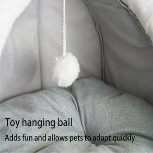 This cat bed gives your furry friends some privacy! They feel safe and sheltered, improving their overall comfort.Because it has a wide, hooded entrance, which keeps them comfortable, cool and breathable.A plush ball does not only play with your pet, but also can urge pet back to sleep.