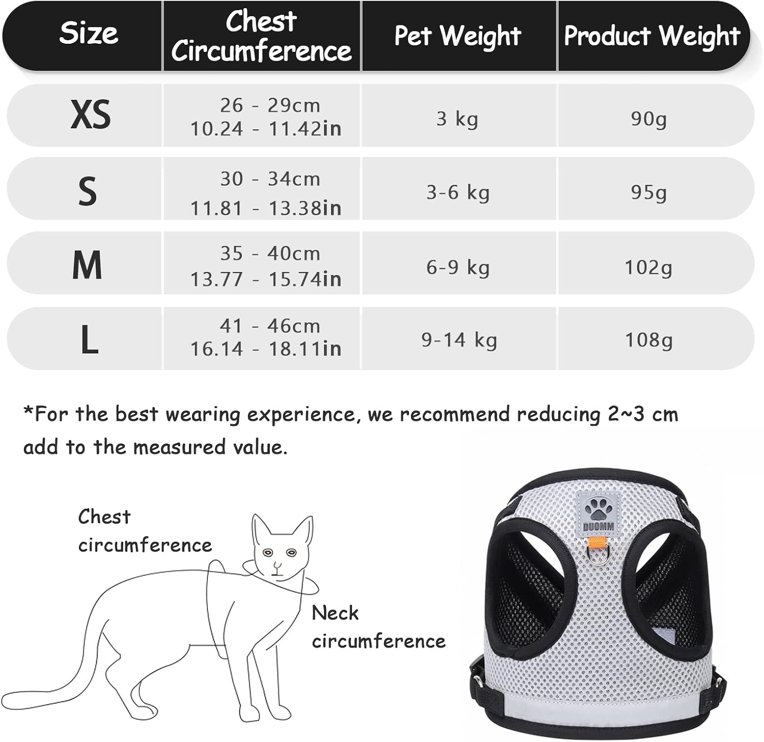 【Suitable Size】You will receive gray M size (Chest: 35-40cm ) cat harness with 1.5m long leash. Please measure your pet’s chest accurately before purchasing, so that your pet can have a better wearing experience. For the best wearing experience, we recommend that you reducing 2~3 cm to the measured value.