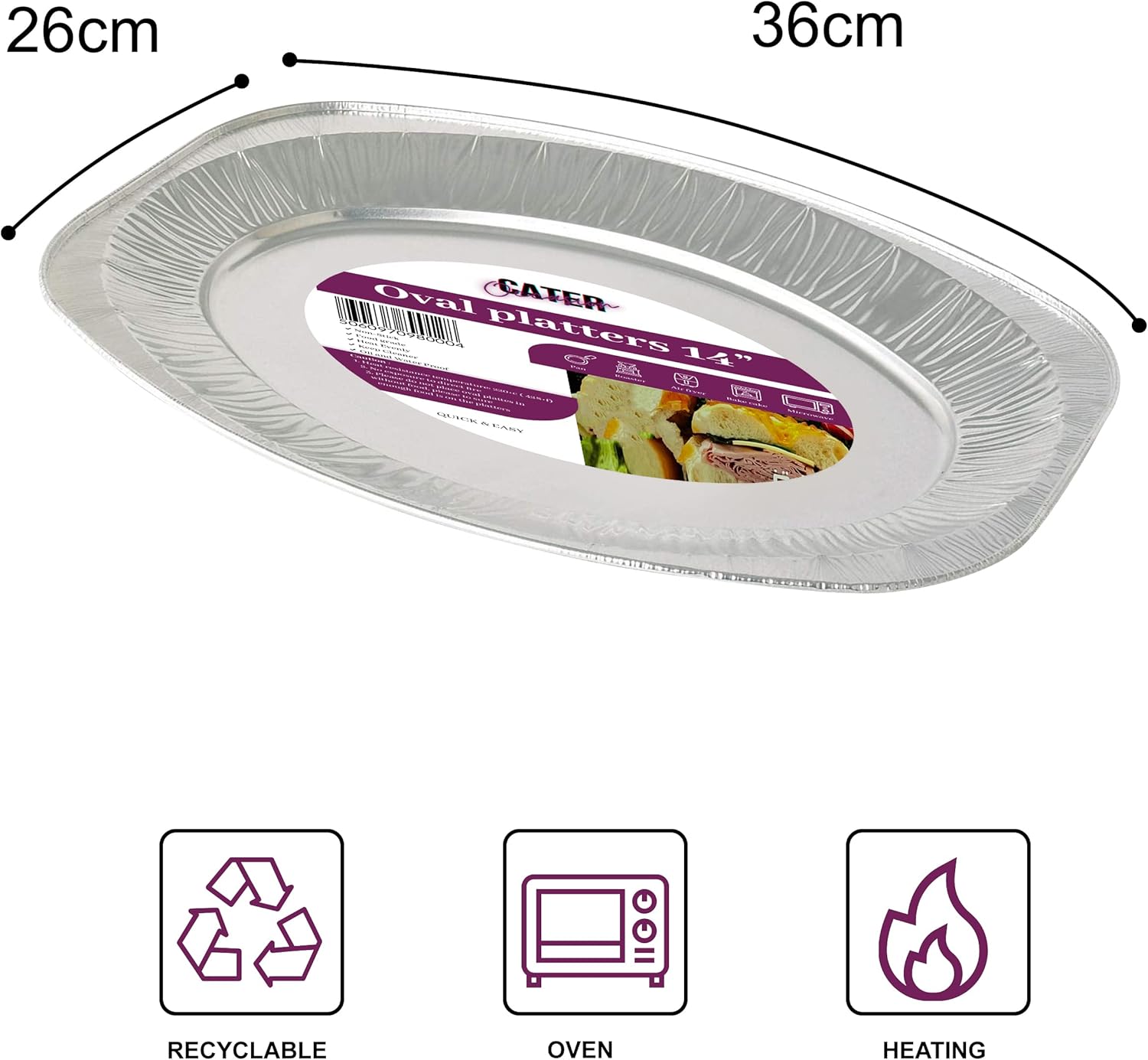 Recyclable – The disposable serving platters is made up of 100% silver aluminium recyclable material. So once the platter tray is at its end of use, it can be safely recycled.