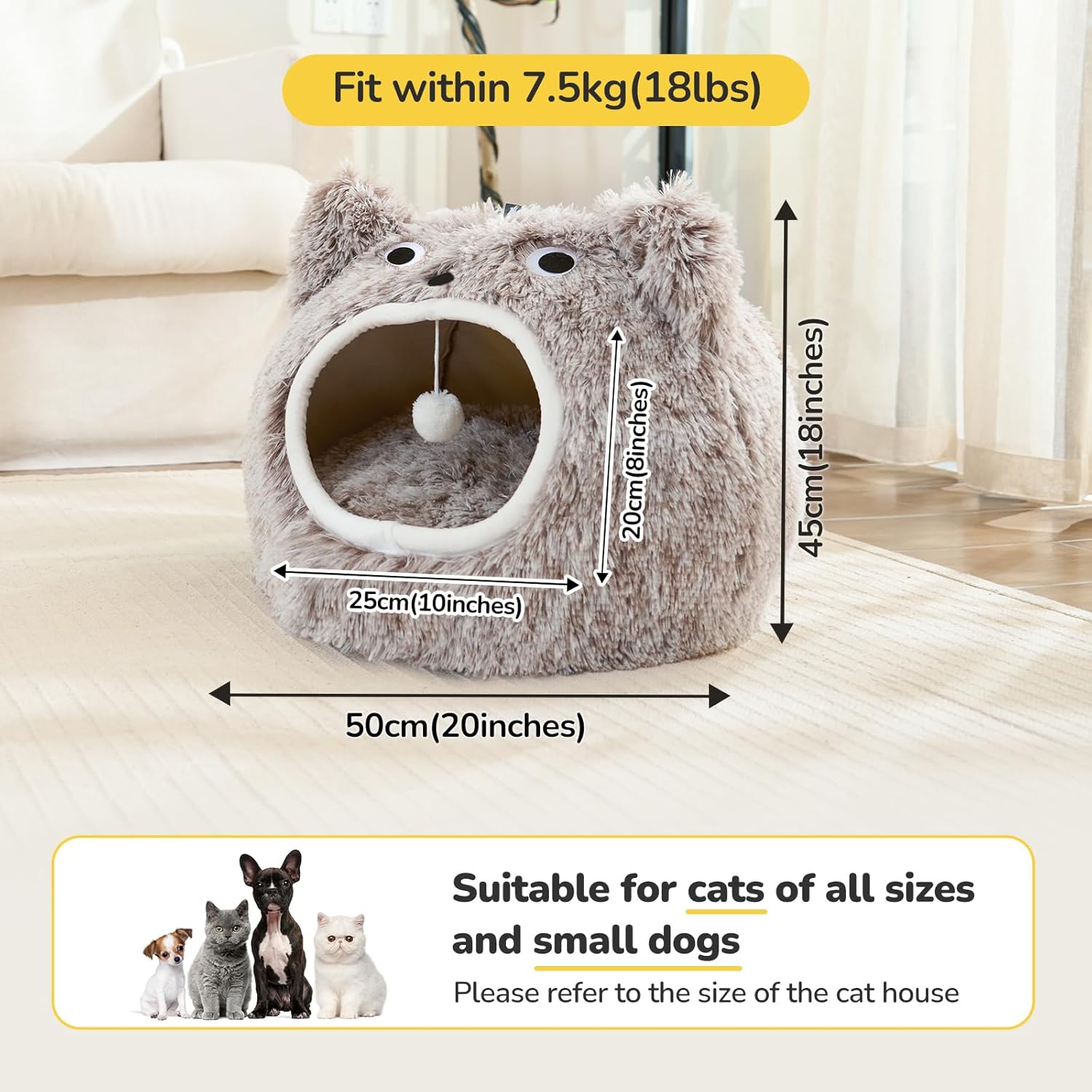 CATISM Cat Cave Cat Bed Washable Cat Sleeping Place for Cats Plush Pet Cat Pillow Cat House Cat Cushion Fluffy Kitten Puppy Cuddly Bed Pet Bed (Coffee)