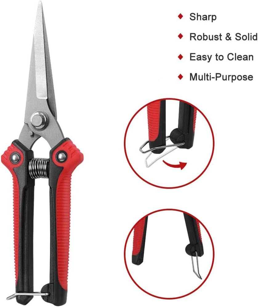 1.High-quality BladesThese pruning snips come with stainless steel precision-sharpened blades.Their strong sharp blades ensure fast and accurate cutting.