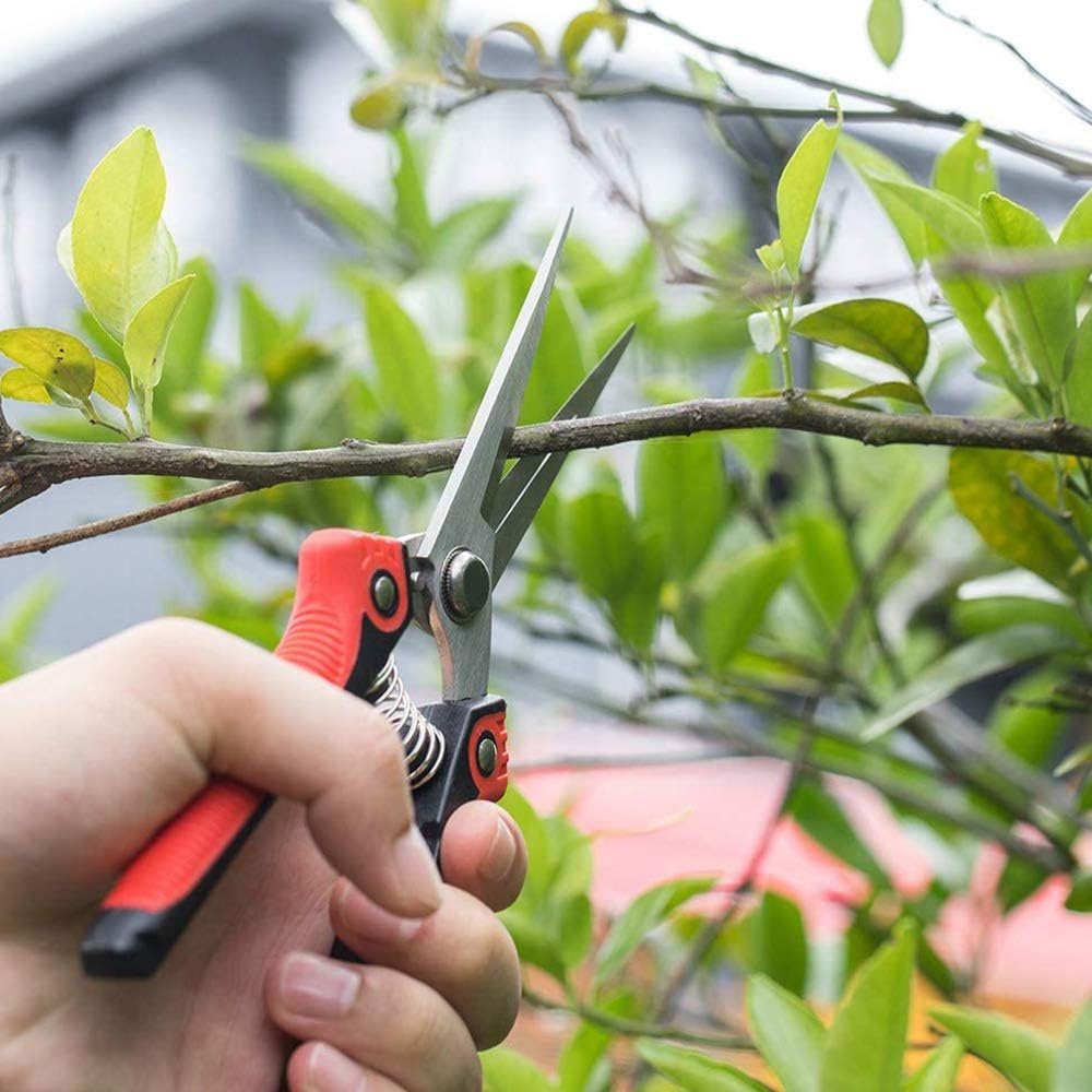 【Make Precise Cuts】The long straight blade of pruning shears can easily enter the narrow space and cut off twigs and fruits attached to plants without any effort.The Garden Scissors are suitable for pruning dead flowers, tree stems, rose bushes, shrubs, small seedlings, harvesting vegetables.