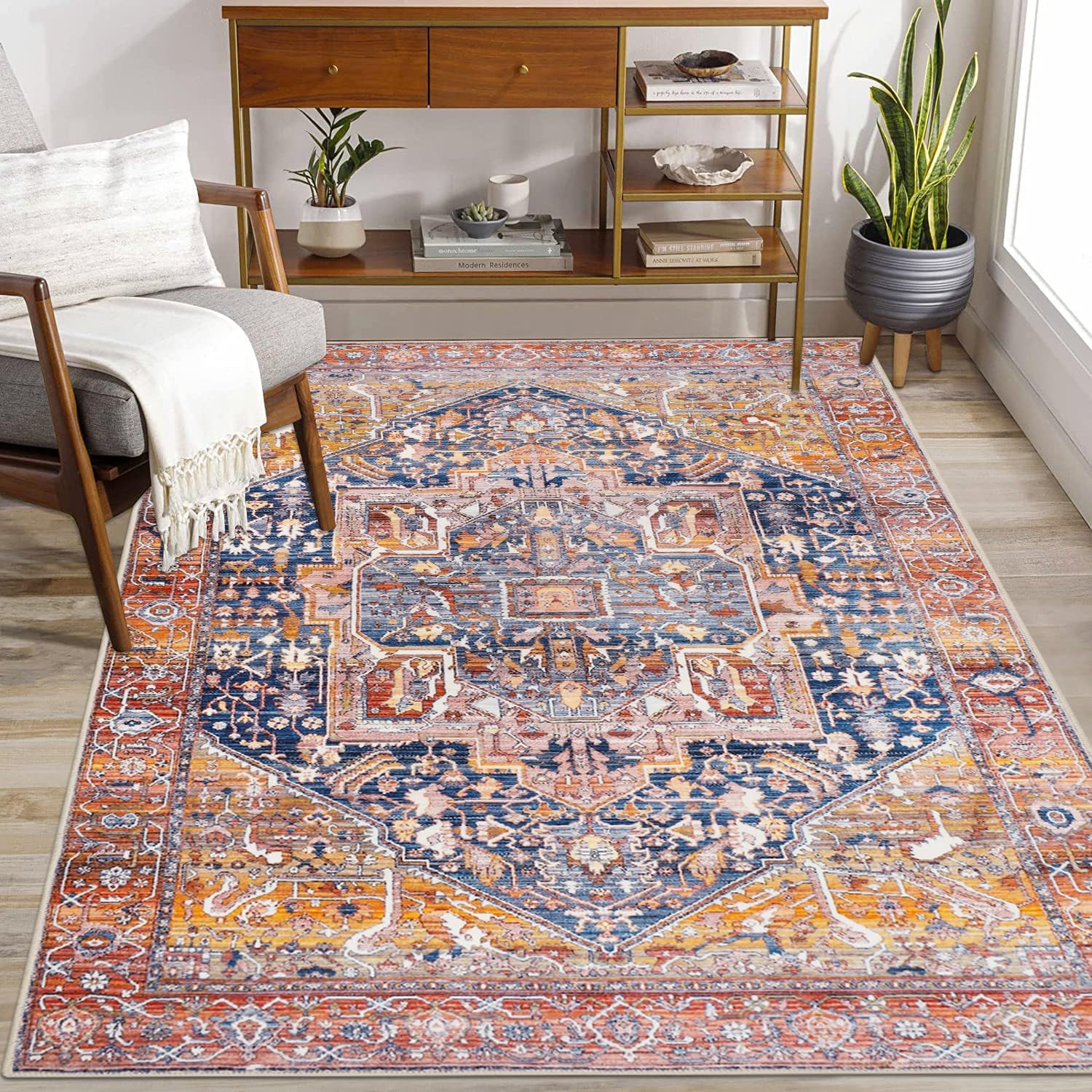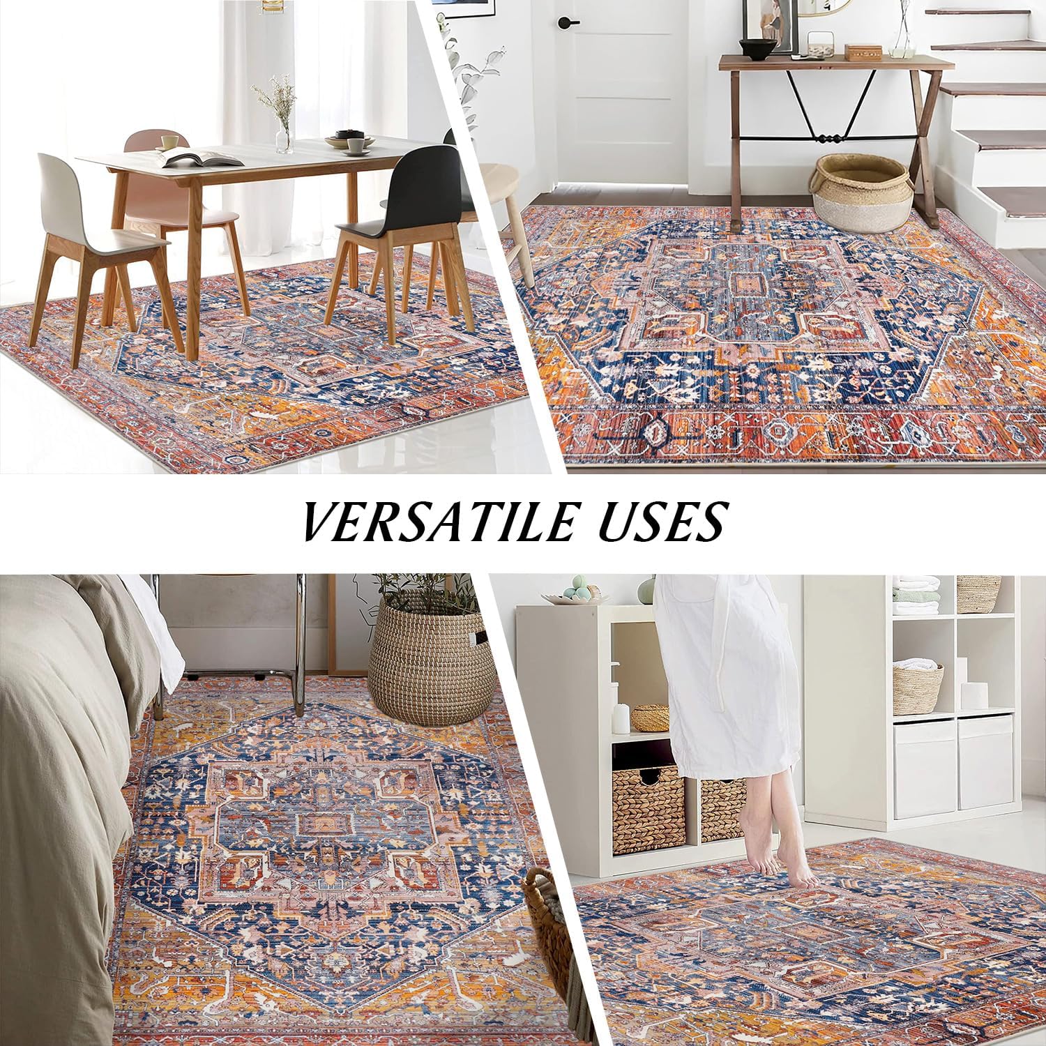 🧡EXCLUSIVE DESIGN: The printed pattern of our carpet area rug is very elegant and vibrant in a orange, yellow and blue colorway, which is full of boho and vintage atmosphere. The oriental area rug pairs well with a variety of furniture styles and color schemes, making it a great choice for those who like to change their decor frequently.