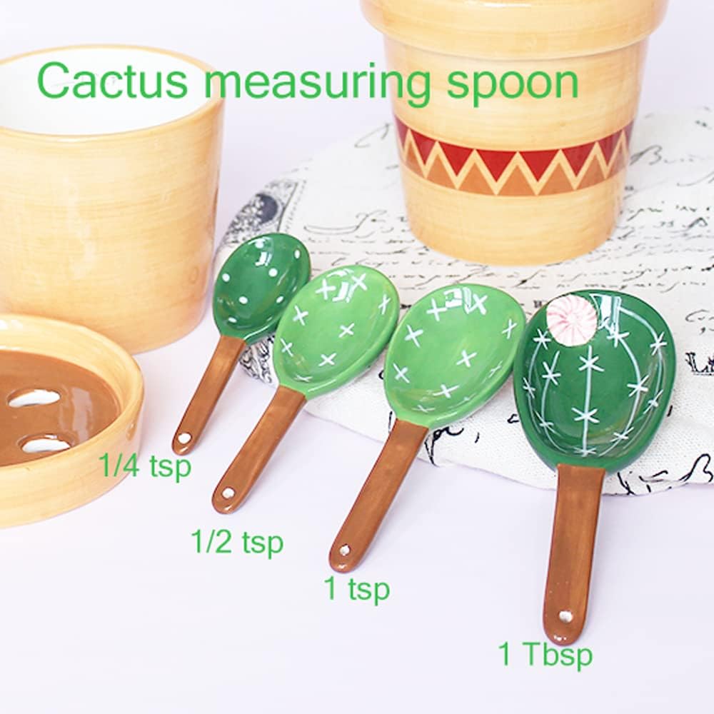 Durable Ceramic and Cute Design: Thick, durable, lead-free ceramic is dishwasher safe and has no fade when used.You can use the novelty cactus small measuring spoons in everyday life.