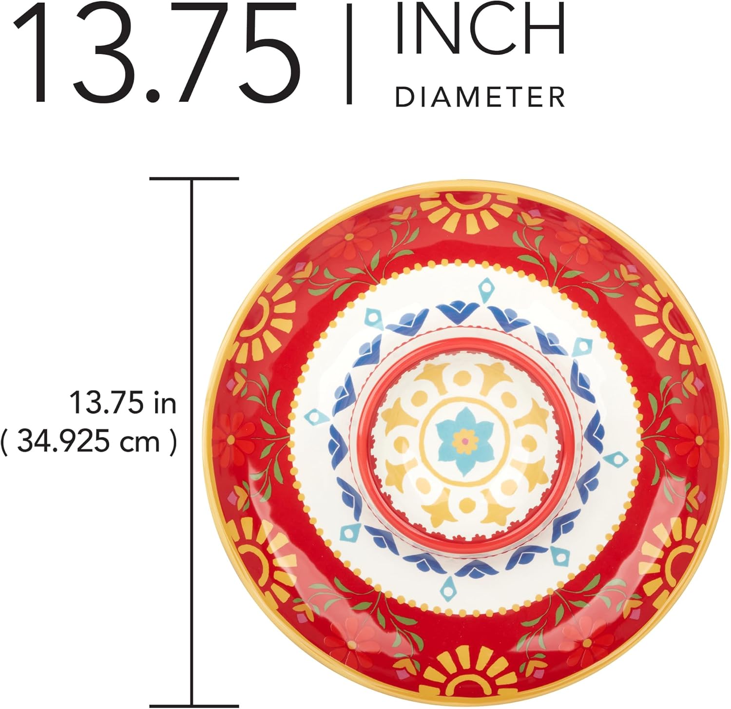 Striking Size for Social Snacking: At 13.75 inches in diameter, this Chip and Dip provides ample space for an array of chips and a generous helping of your favorite dips, from spicy salsa to creamy guacamole.