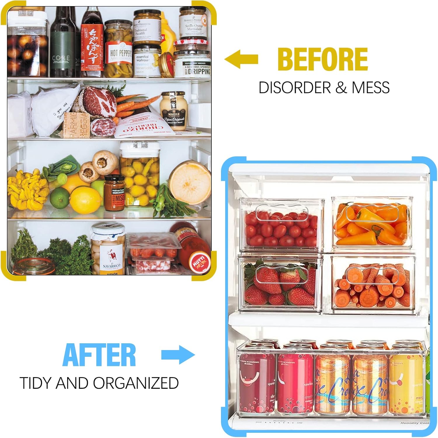 Built-in handles make it easy to pull out the fridge organisers stackable in order to reach items at the back of your refrigerator or carry the bins from the fridge to the counter.