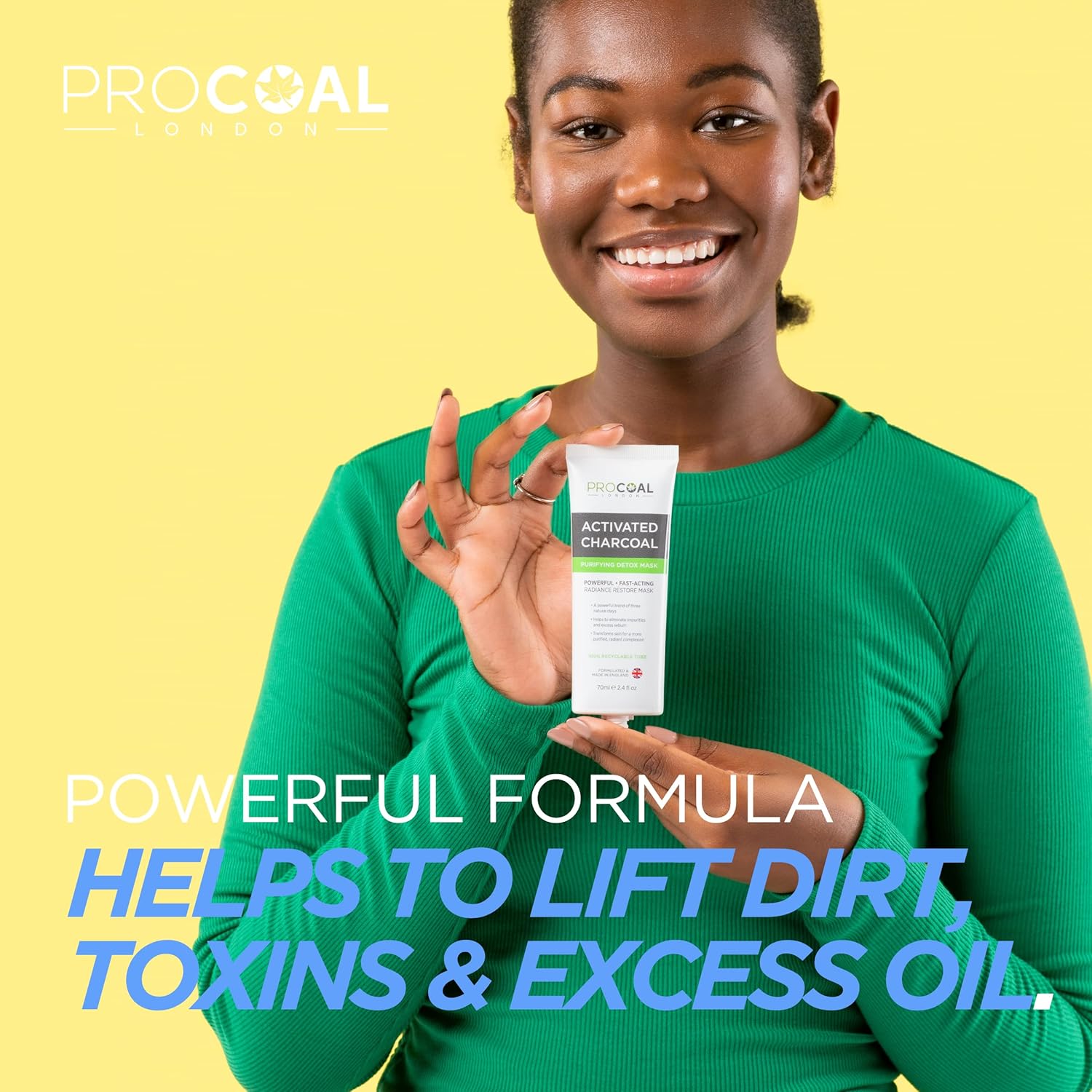 Charcoal Face Masks Skincare for Men and Women 70ml by Procoal – Clay Mask Targets Clogged Pores, Impurities, Toxins & Excess Oil, 100% Recyclable Packaging, Cruelty-Free – Made in UK