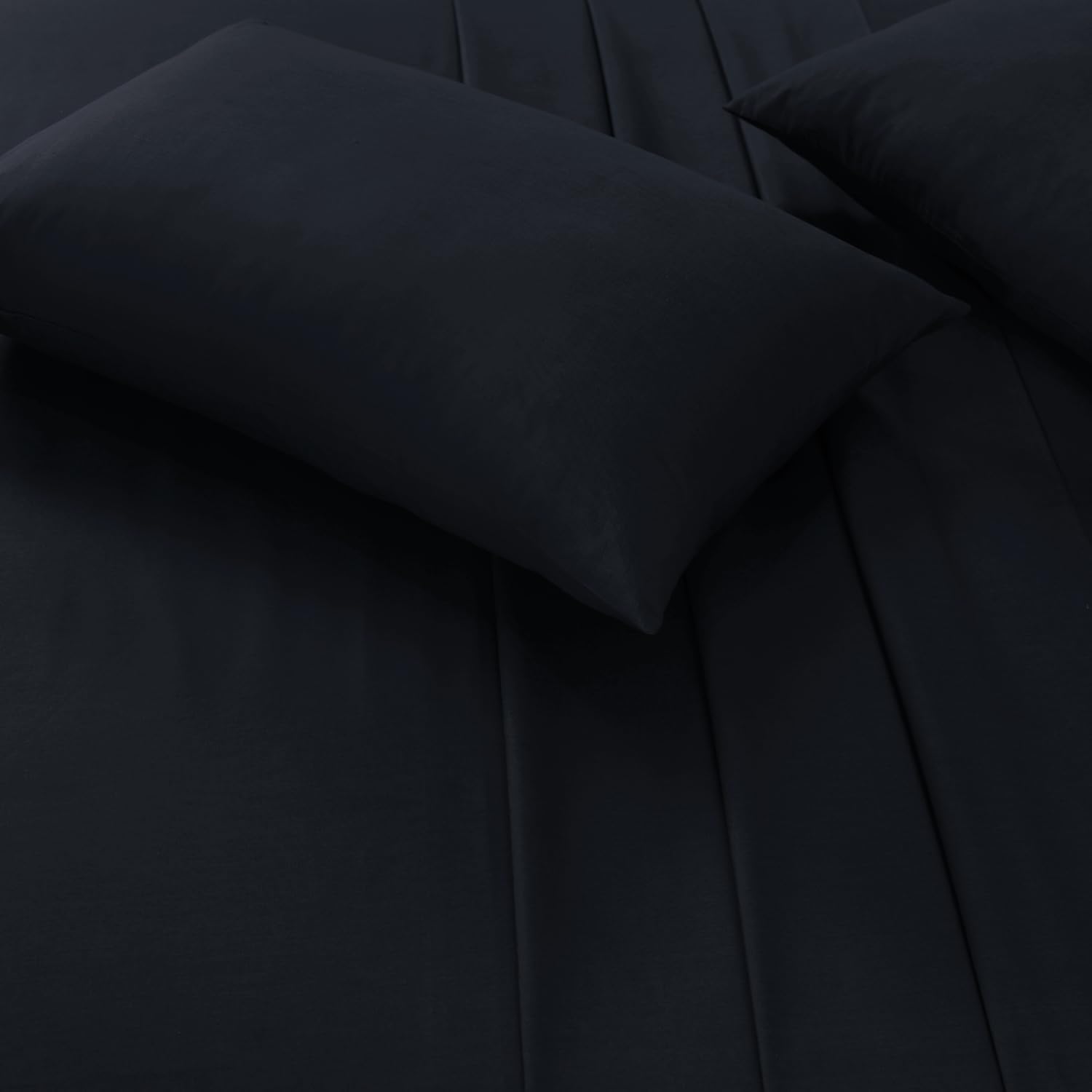 CHARKHAH Polycotton Flat Sheets with Single Double King Size Bed Ultra Soft Plain Top Sheet Dyed in Trendy Colors Hotel Collection Sheets Ideal for Winter & Summer Bedding (Black, Single)