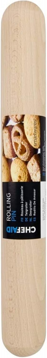 Chef Aid Wooden Rolling Pin, Ideal for all baking tasks and perfect for pastry and dough products, measures 28.5 cm wide and made from well source wood, Beige