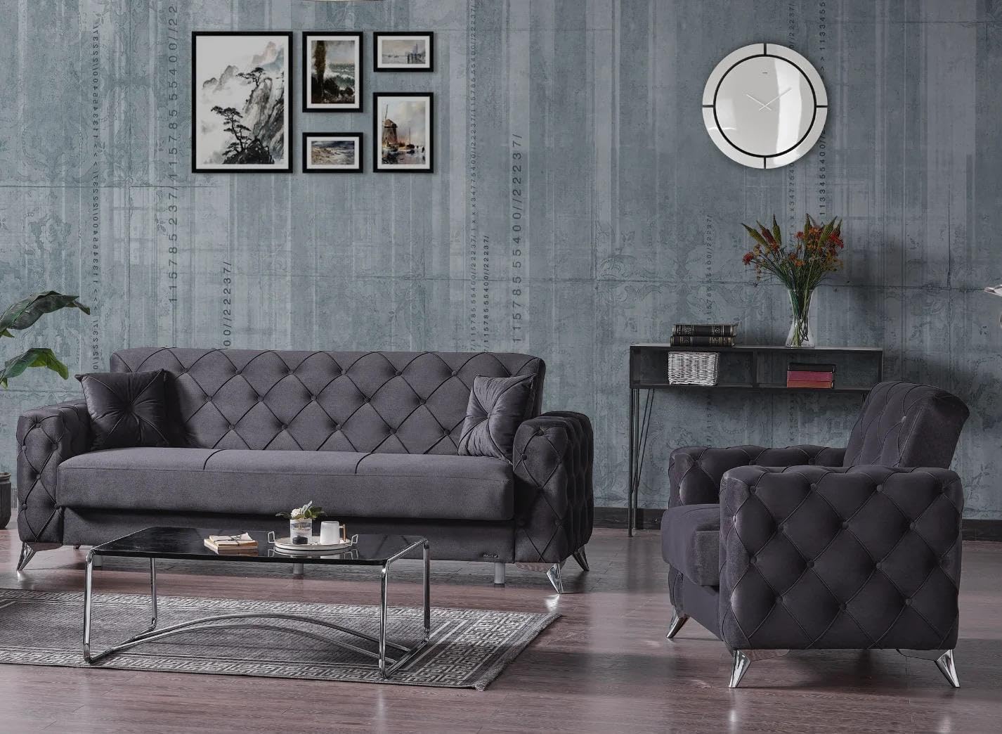 chesterfield sofa bed set (3+2) – made in turkey (2, Black)