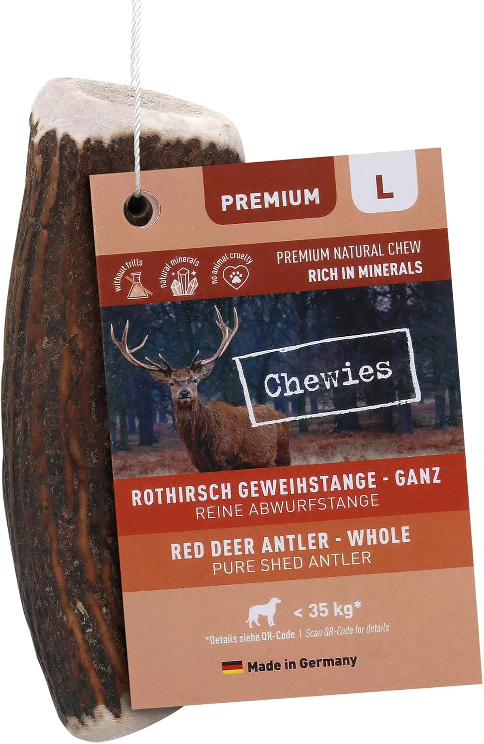 Chewies Chew Antlers for Dogs – Whole Bar – Red Deer Antlers – Natural and Mineral Rich – Size L
