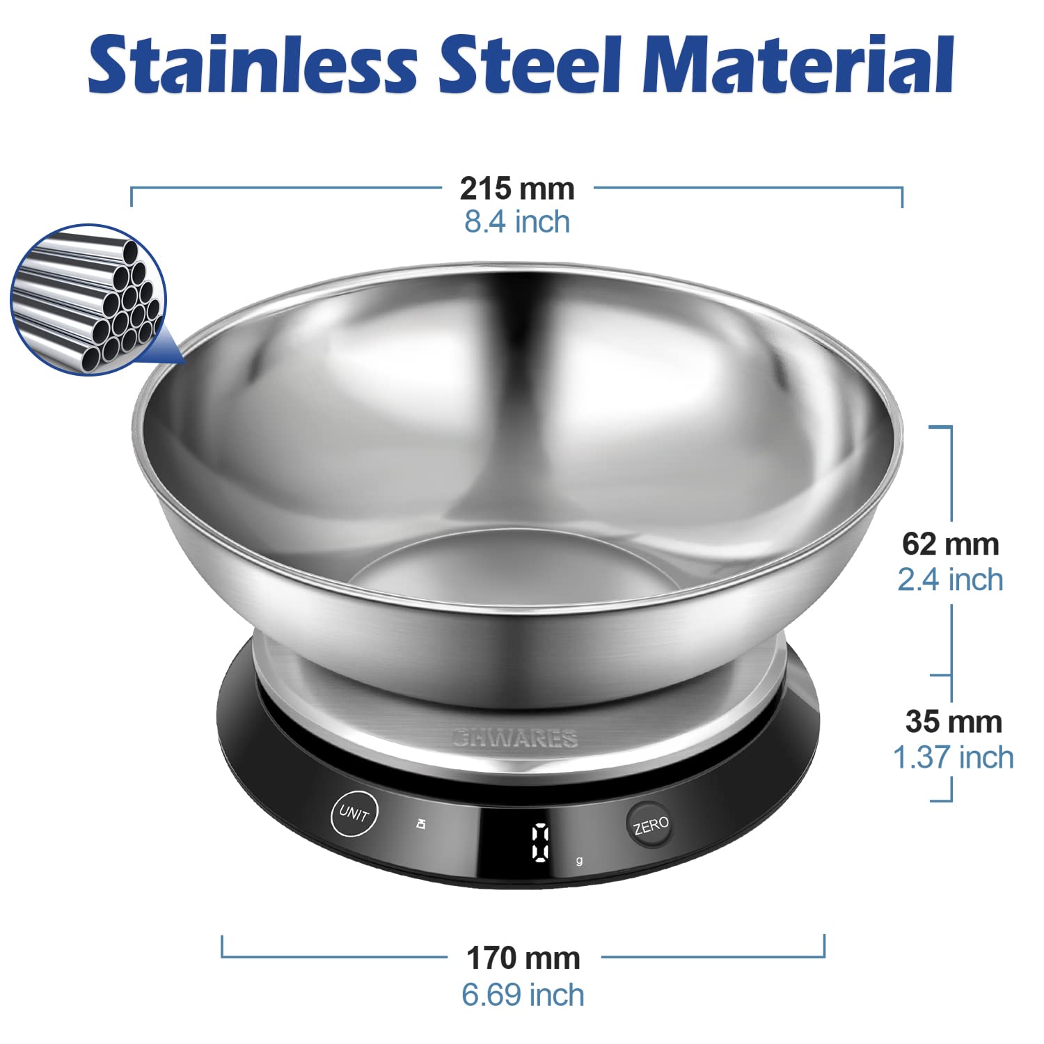CHWARES Digital Kitchen Scale with Bowl, USB Rechargeable Food Weight Scale for Cooking Baking, Kitchen Scales for Food Ounces and Grams, Large Digital Kitchen Food Scale with Stainless Steel Bowl
