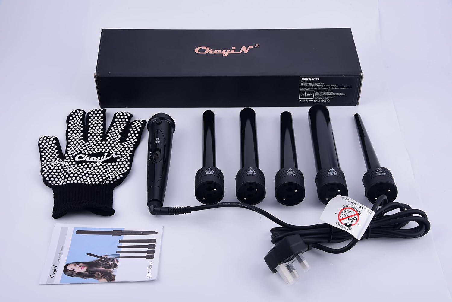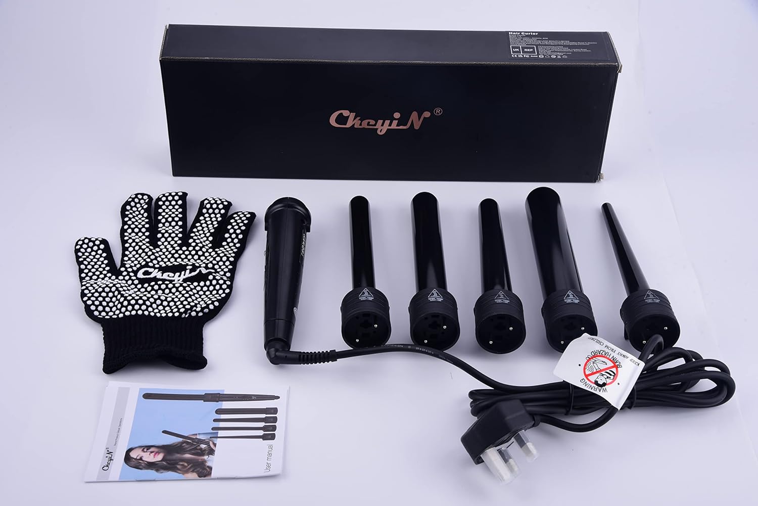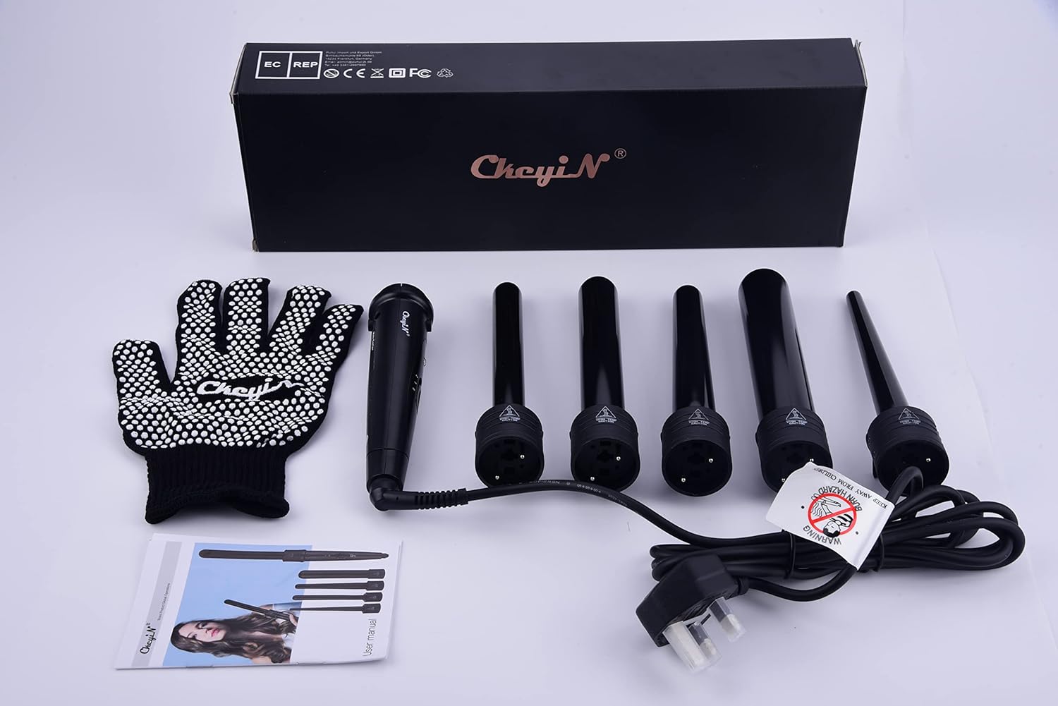 CkeyiN 5 in 1 Multifunction Curling Wand Set Interchangeable Hair curlers Kit