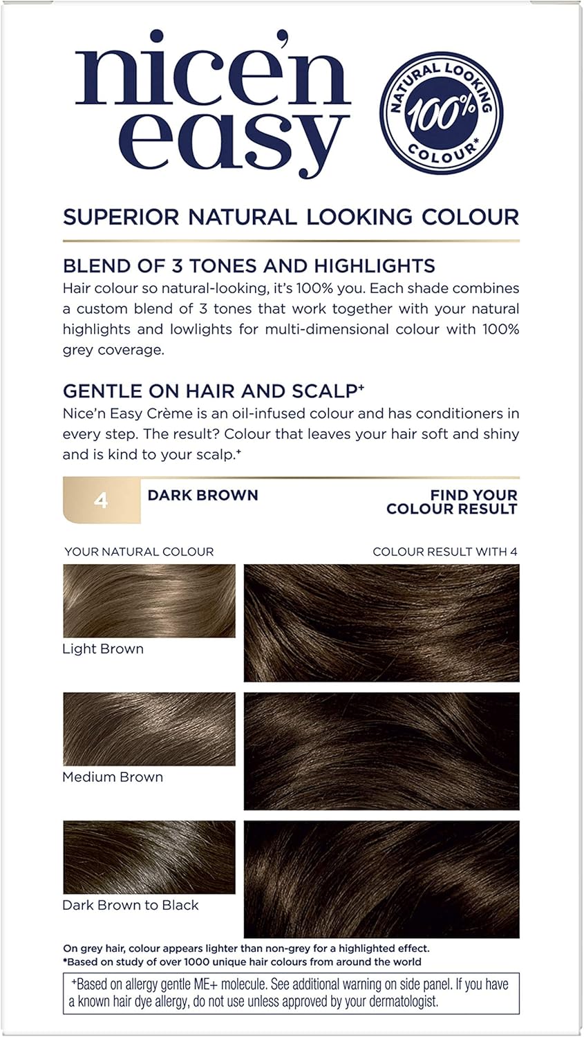 Clairol Nice’n Easy Crème Permanent Hair Dye, 4 Dark Brown, 230g