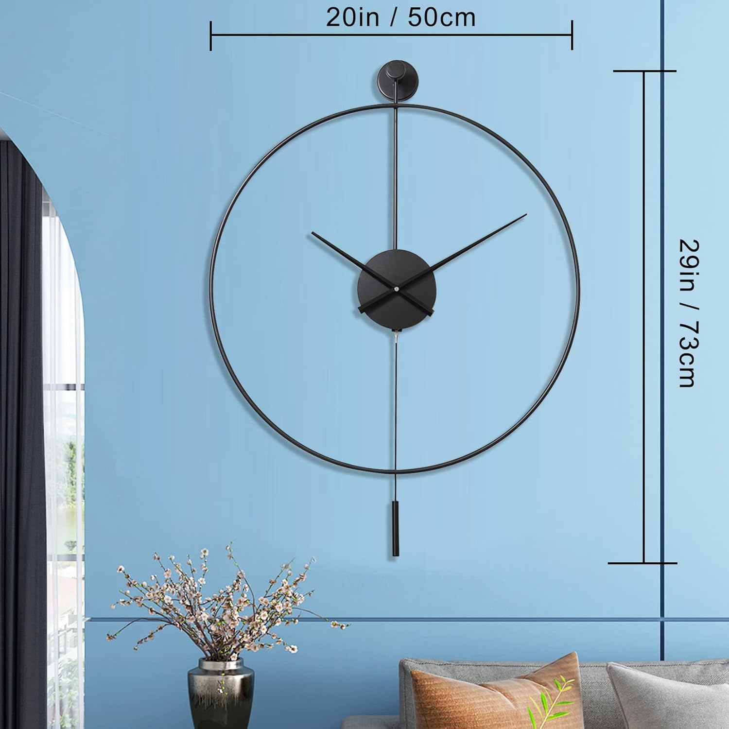 【Large size】19.7”×29” (29” is the dimension from the top hook to the bottom pendulum) big wall clock, decorations for living room, bedroom, kitchen, office, coffee shop, study, etc. 2 AA carbon batteries required (not included)
