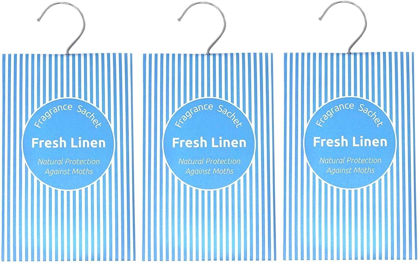 Clay Roberts Fragrance Scented Sachet Bags, Natural Moth Repellent, Pack of 3, Fresh Linen, Wardrobe Air Fresheners, Storage & Clothing Odour Prevention