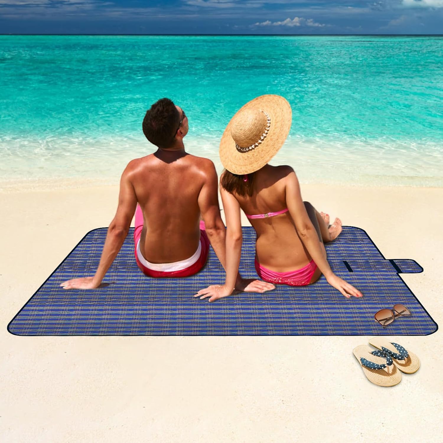 Cleaneaty Picnic Blanket, Foldable Beach Blanket Waterproof Beach Rug Lightweight Picnic Mat with Handle for Hiking Travelling Outdoor Beach Camping Parks Family 180CM X 200CM (Blue)