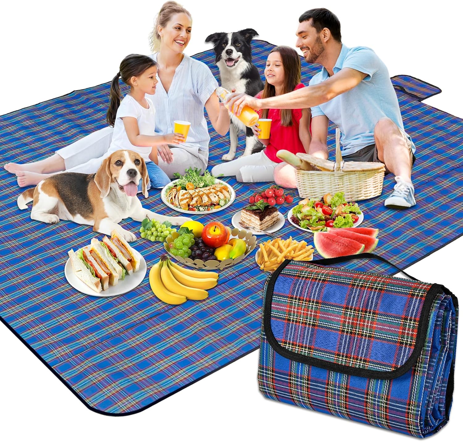 Its pretty pattern of blue-and-white plaid provides a charming foundation for any summer picnic. providing plenty of space for a family of four and picnic items. Enjoy a nice outdoor time!