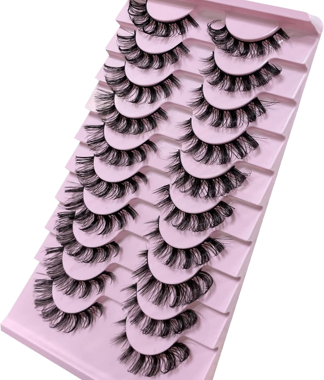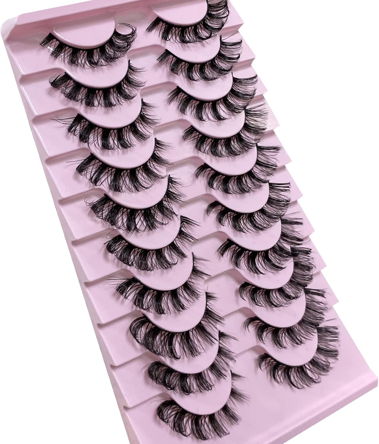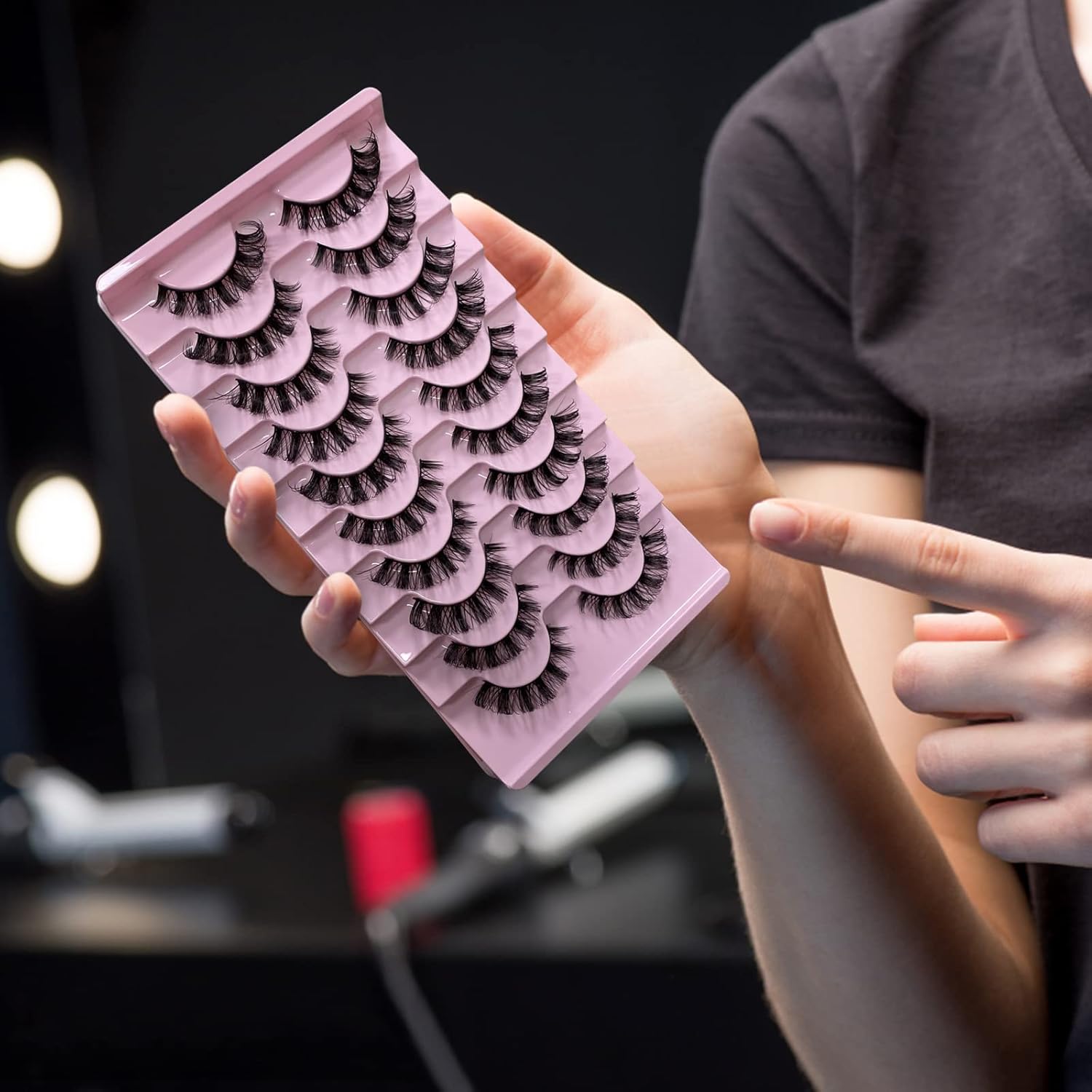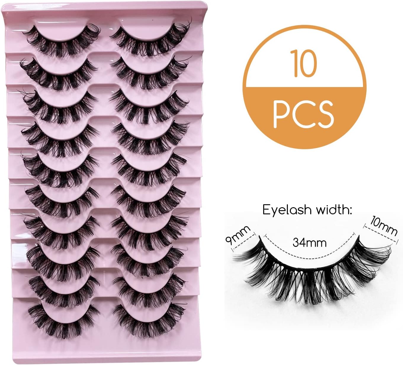 CNMTCCO False Eyelashes 10 Pairs Russian Strip Lashes Natural Fluffy Wispy D Curly Faux Mink Lashes Thick Short Soft Eyes Lash Reusable Fake Eyelashes
