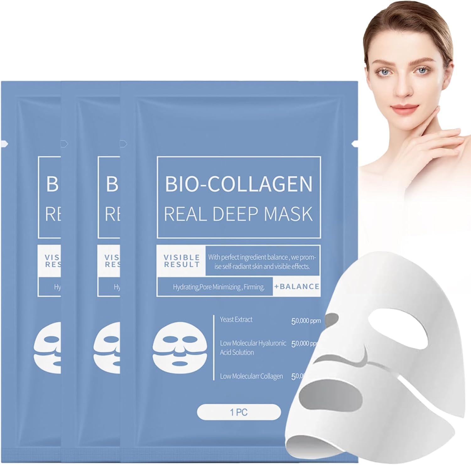 Collagen Face Mask Overnight,Collagen Real Deep Facial Cleansing Mask,Hydrating Overnight Mask Pure Collagen Films Face Mask (3pcs)