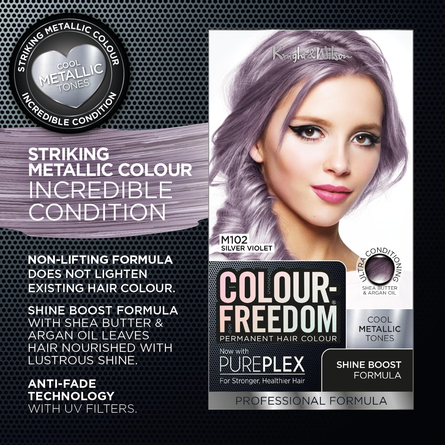 Colour Freedom Metallic Silver Violet Permanent Hair Dye with PurePlex. Ultra Glossy Conditioning Hair Colour. 100% grey coverage. By Knight & Wilson.