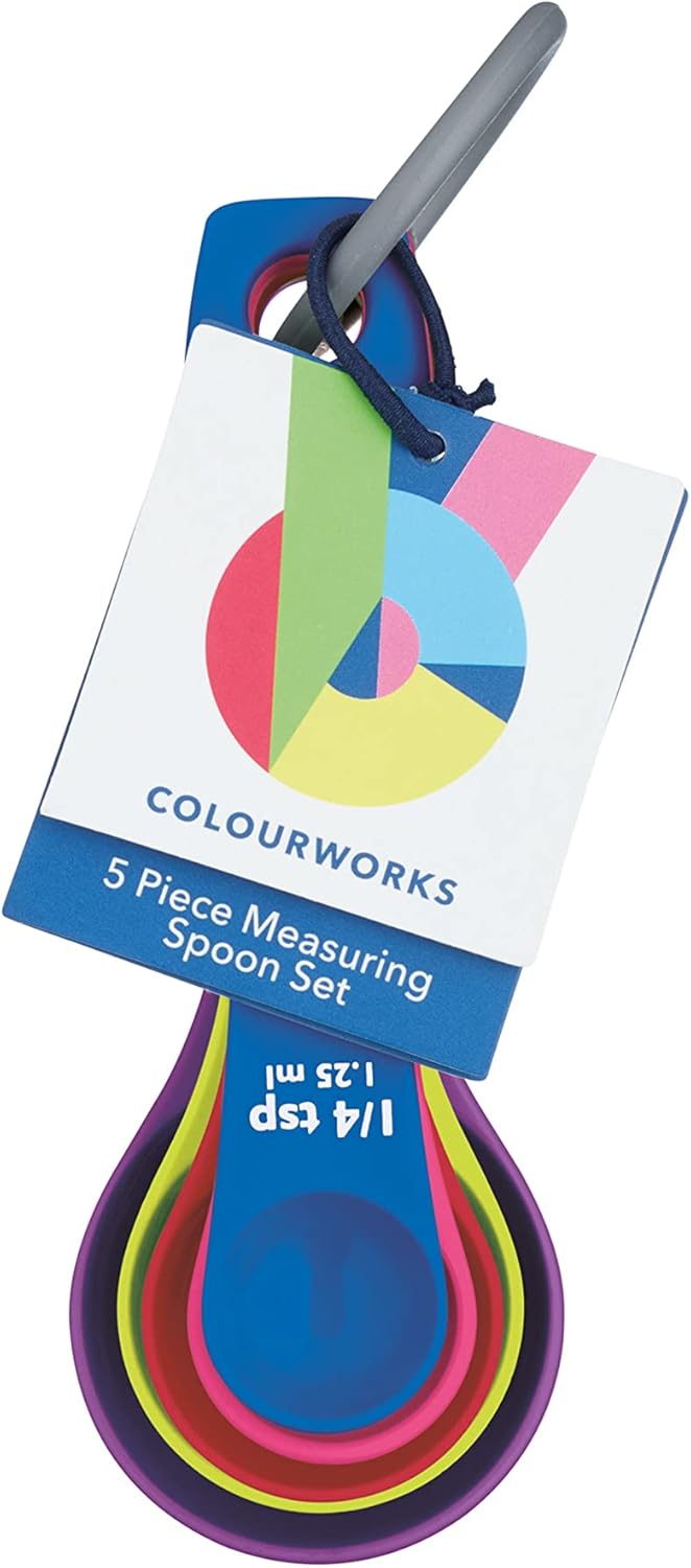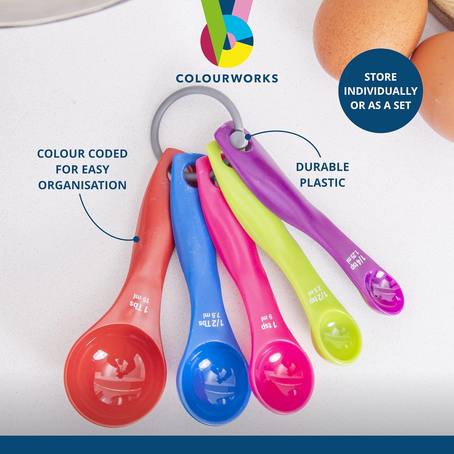 Colourworks Measuring Spoon Set, 5 Spoons for Measuring Food, Durable, Stain Resistant and Dishwasher Safe Plastic, Bright Colours, Brights