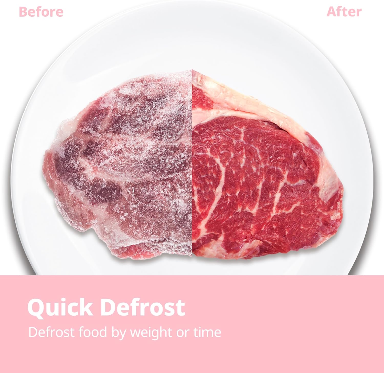 Quick Defrost: Defrost foods using the defrost by weight and time function. Your food will thaw quickly without overheating. Start defrosting instantly and your food will be ready in a few seconds.