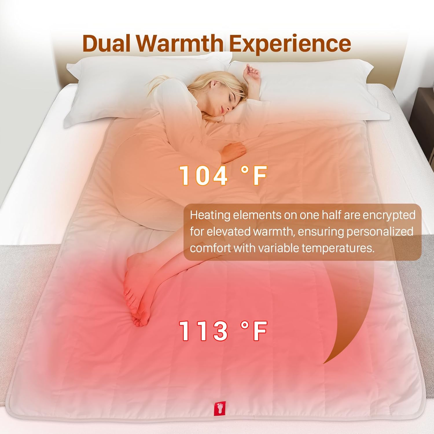 Experience Blissful 9°F Comfort for Body and Feet: Tired of chilly feet in winter or an imbalance between foot and body warmth? Comfytemp heated underblanket for double bed provides an innovative zoning design, maintaining a 9°F temperature variance, aligning with our body’s natural preferences. Enjoy a more comfortable sleep and savor a tranquil night’s rest with this effective solution.