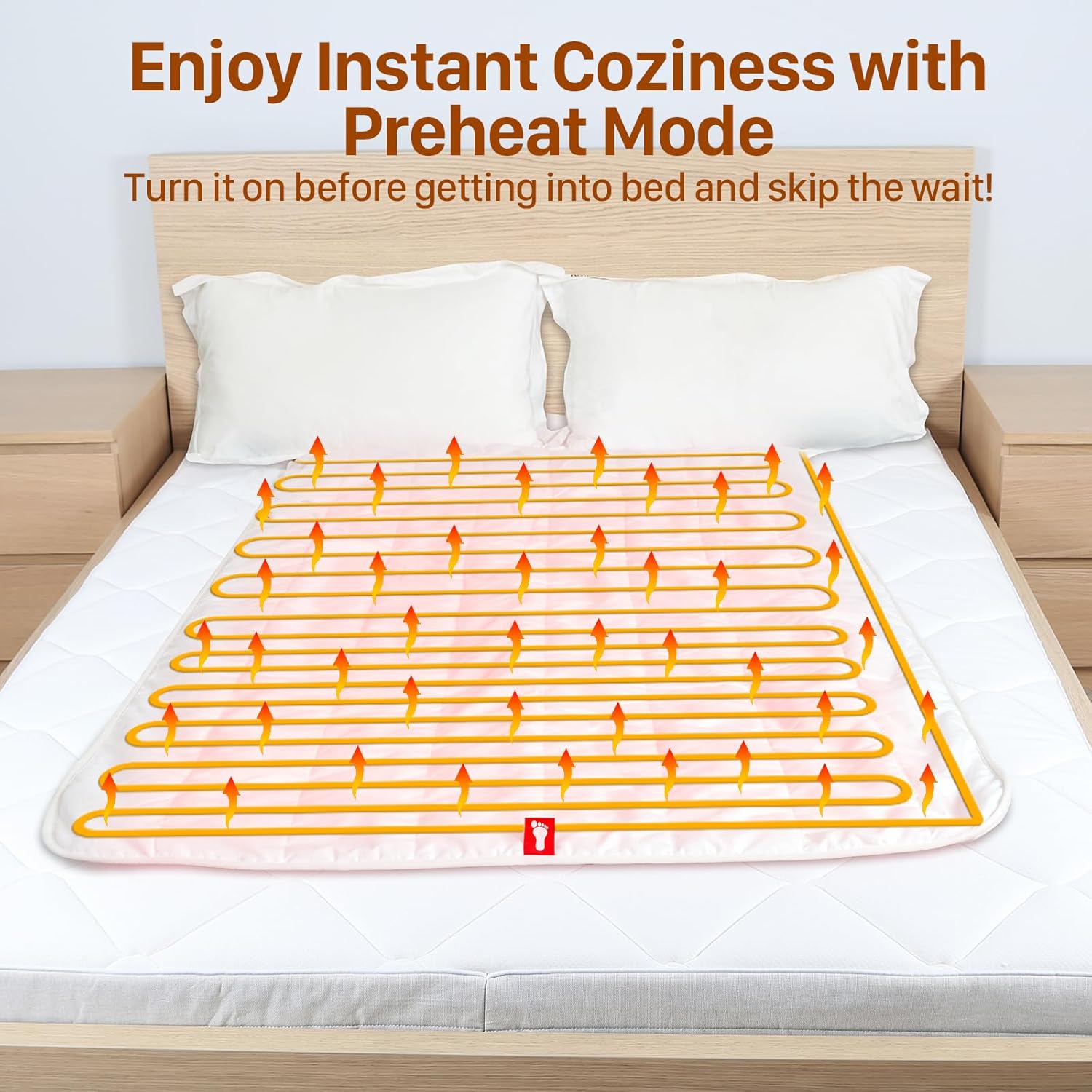 Embrace Instant Coziness with Preheat Mode: Elevate your experience by activating the Preheat Mode on your heated blanket before bedtime. This innovative feature rapidly warms the underblanket and automatically shuts off after just 30 minutes, ensuring you enjoy immediate warmth without any unnecessary wait.