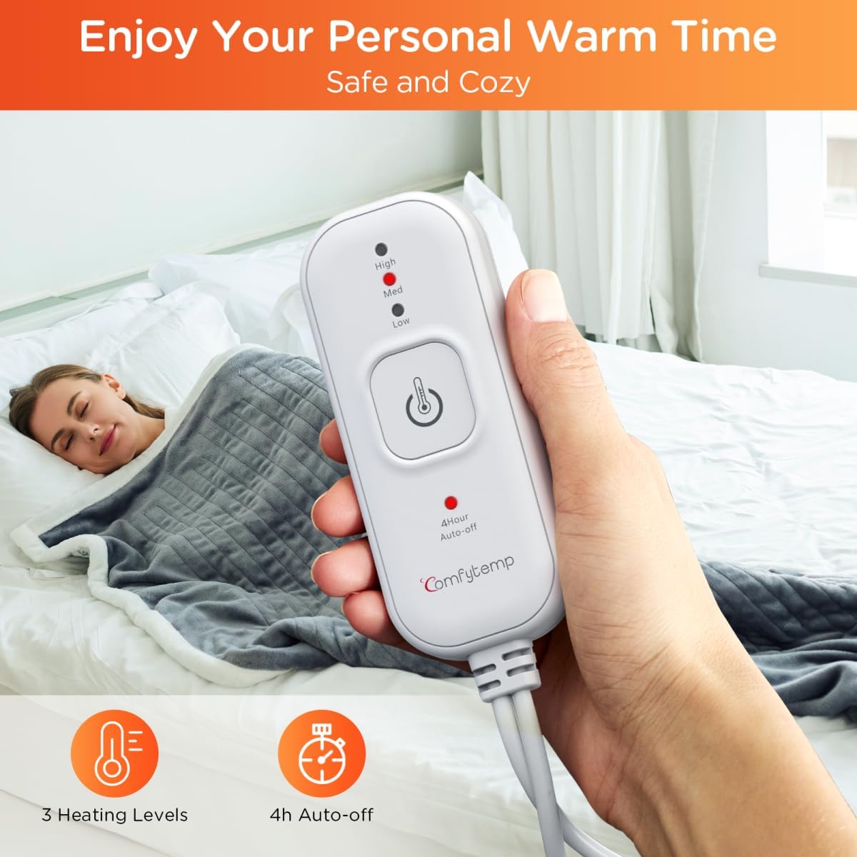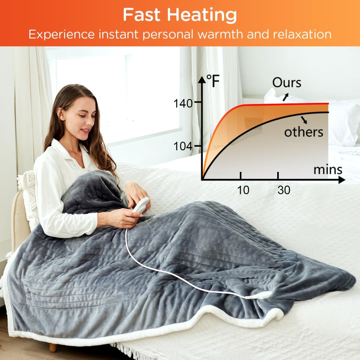 Rapid Heating: The heating blanket features 3 heating levels with a temperature range of 104°F-140°F. With its one-touch design, it’s easy to use even for the elderly. The larger heating wires cover your entire body for effective warmth, and this heated blanket excels in quick heating, providing warmth within 10 minutes. The 4-hour auto-shut-off feature ensures your peace of mind while enjoying relaxation and comfort.