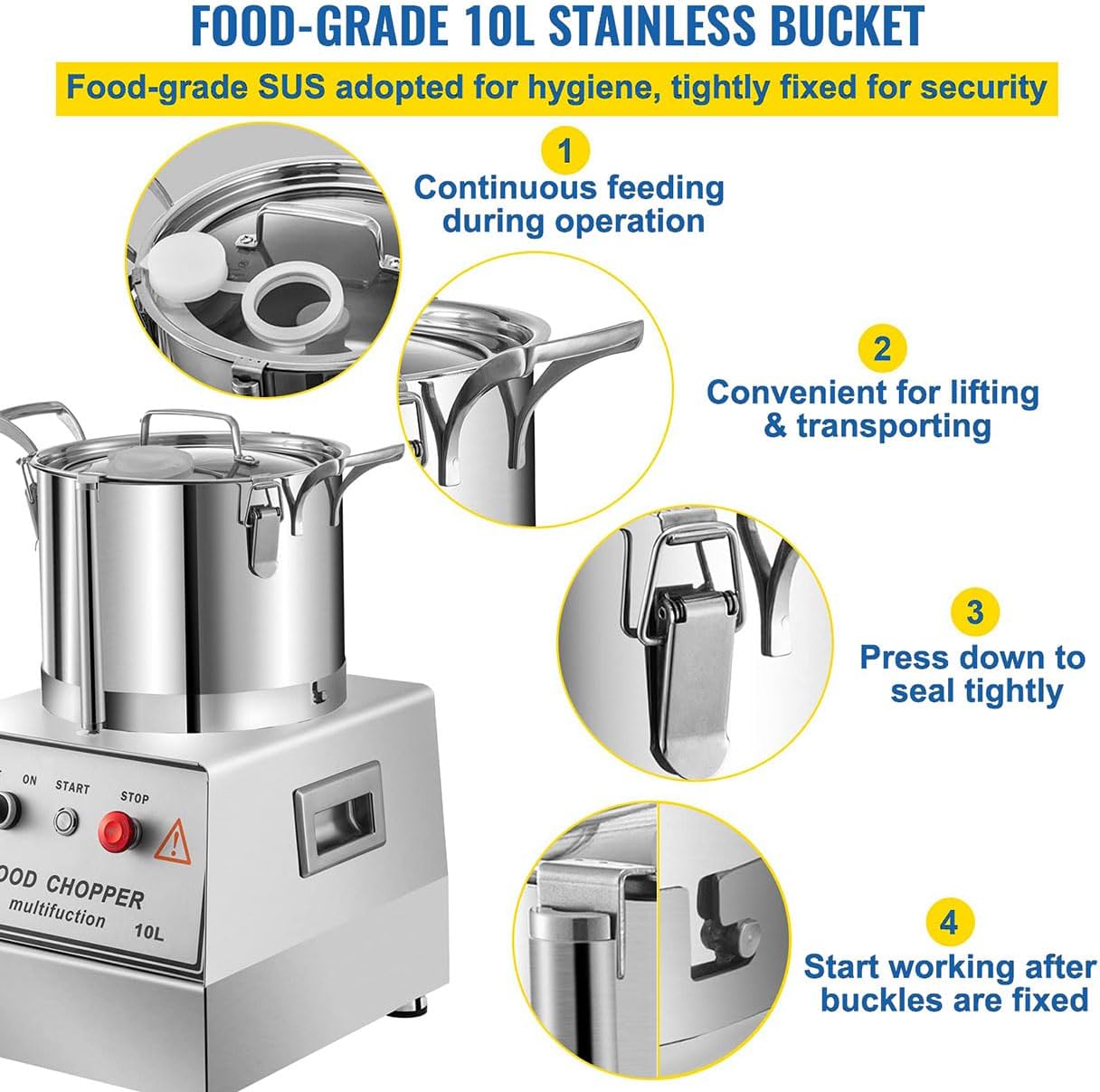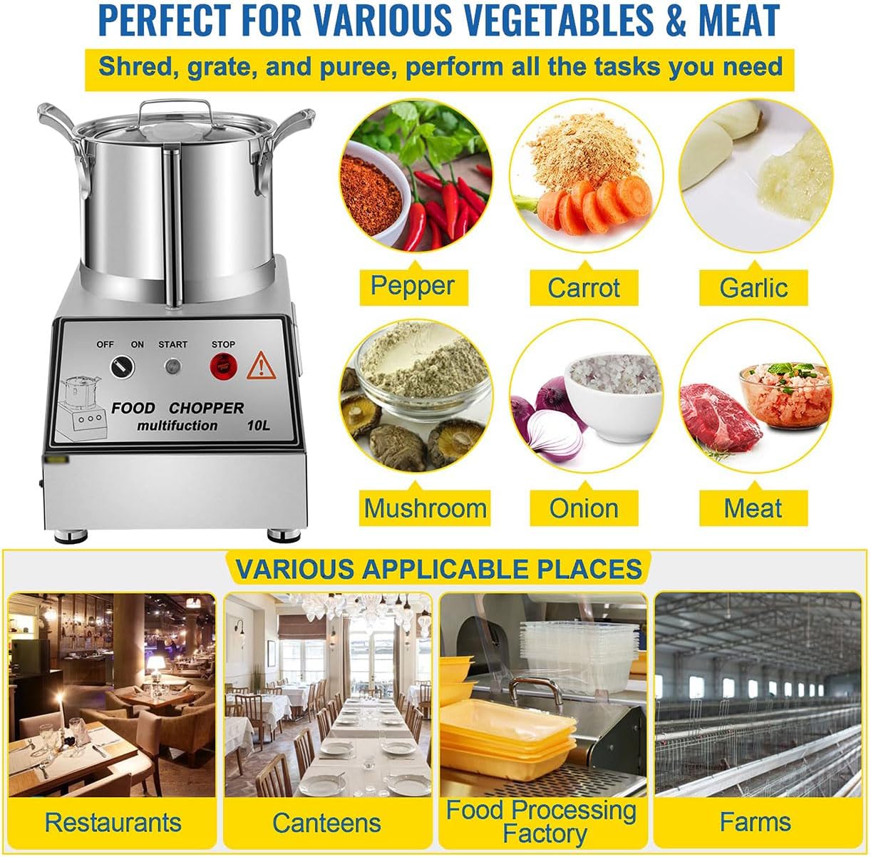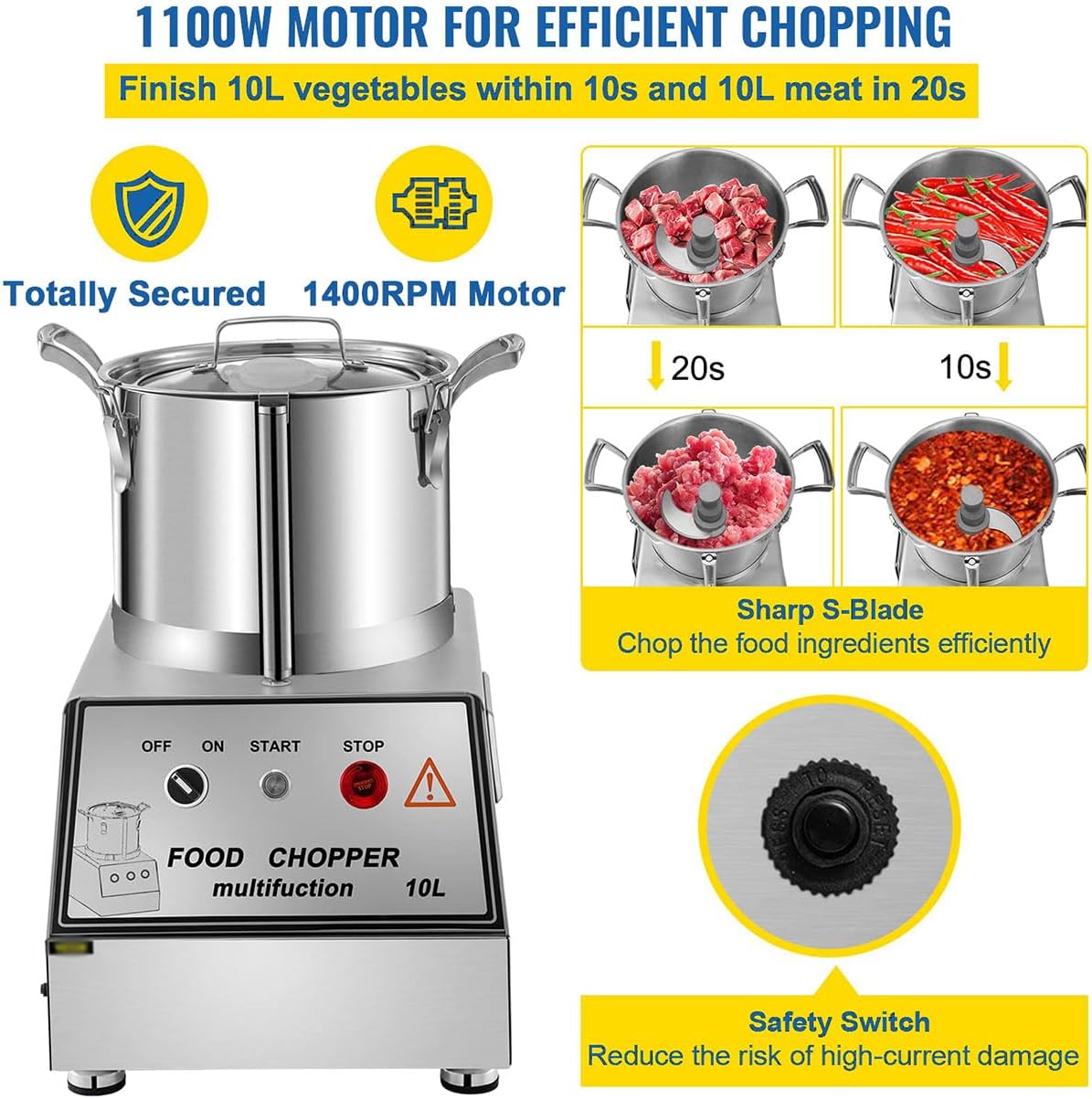 🥗High Performance: With a powerful 1100W motor running at 1400RPM, this food chopper can quickly process a variety of ingredients, increasing efficiency and meeting customer demand in commercial kitchens.