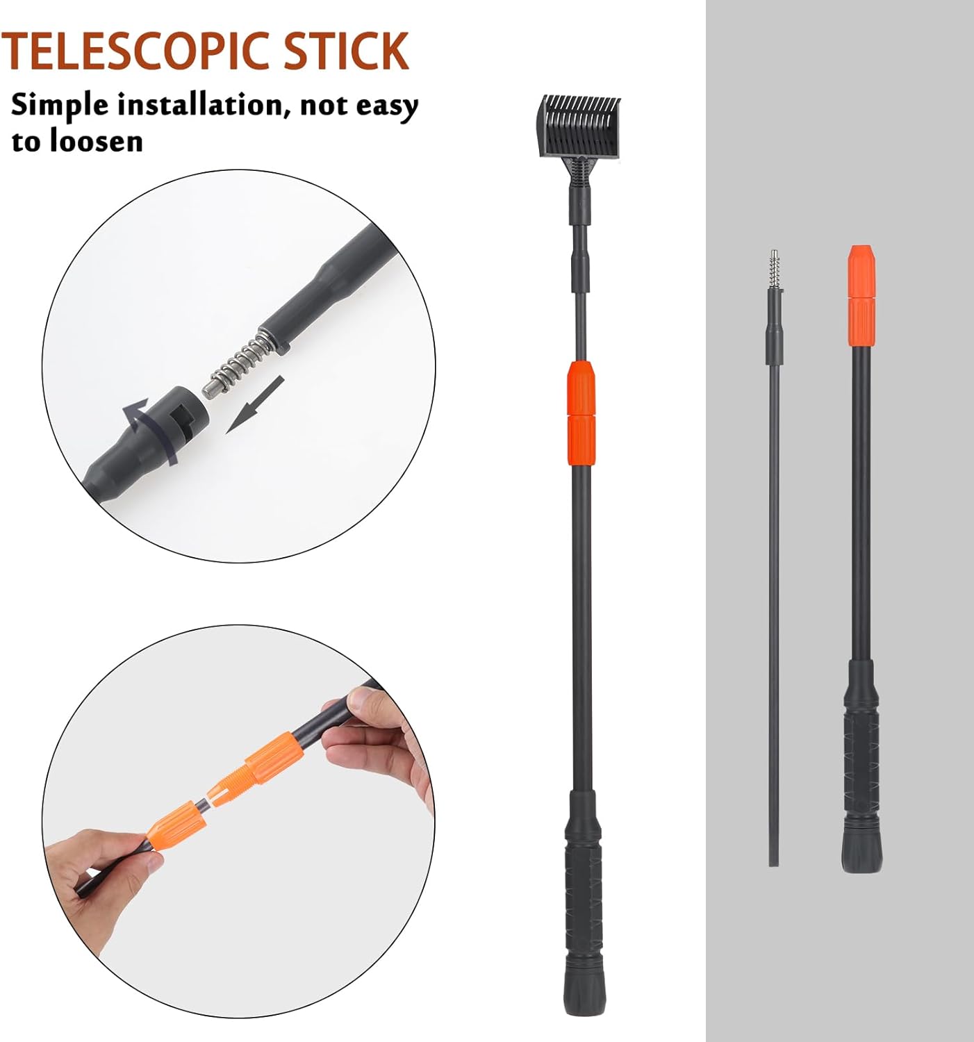 🐟【Ues & Maintenance】Assemble the handle and accessory holder to the rod, tighten the connection for the length you want for catching fish, gravel, sand and algae or brush the glass easily and keep the tool dry after use to avoid oxidation of the sewage.